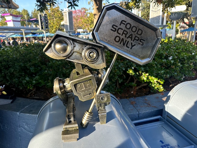 - Themed sculptures have been added to various food scraps trash cans at restaurants throughout the Disneyland Resort.