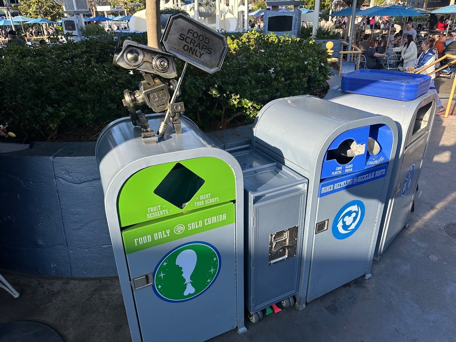 - Food scraps trash cans were recently added to some quick service dining locations at the Disneyland Resort, allowing cast members to more easily sort through the different types of trash.