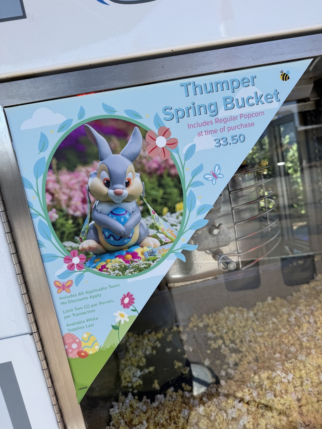 - Officially called the Thumper Spring Bucket, the popcorn bucket has arrived at both Disneyland Park and Disney California Adventure as part of Disney Parks’ Easter and Springtime celebrations.
