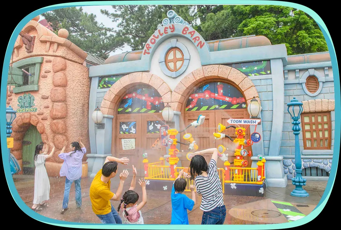 Note that in the Get Soaked Programs and “Get Soaked" Zones, guests’ faces, clothes, shoes, etc., may be exposed to a large amount of water. Please take care not to let your electronic devices, such as smartphones, get soaked, and put them in your bag or pocket.