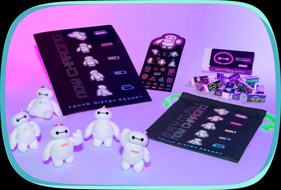 A set of 18 erasers shaped like Baymax will be available along with plush charm keychains of Baymax in various poses, perfect for sharing with friends. Quick-drying, absorbent T-shirts will also be offered, allowing guests to enjoy the splash-filled excitement of the parks even more.