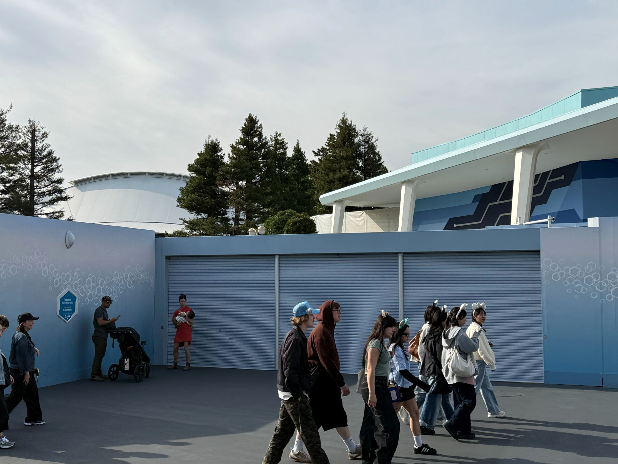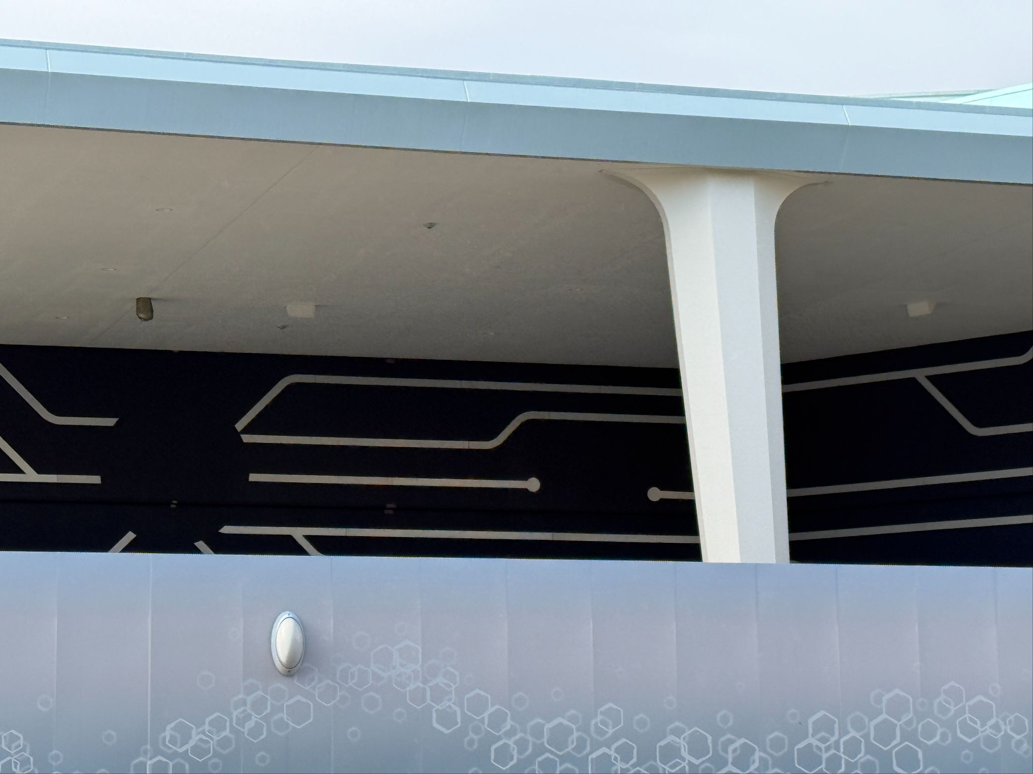 - While there isn’t a whole lot to see, as the entire attraction and queue is situated inside, some detailing has been added to the exterior of the Tomorrowland building, including some motherboard-style designs.