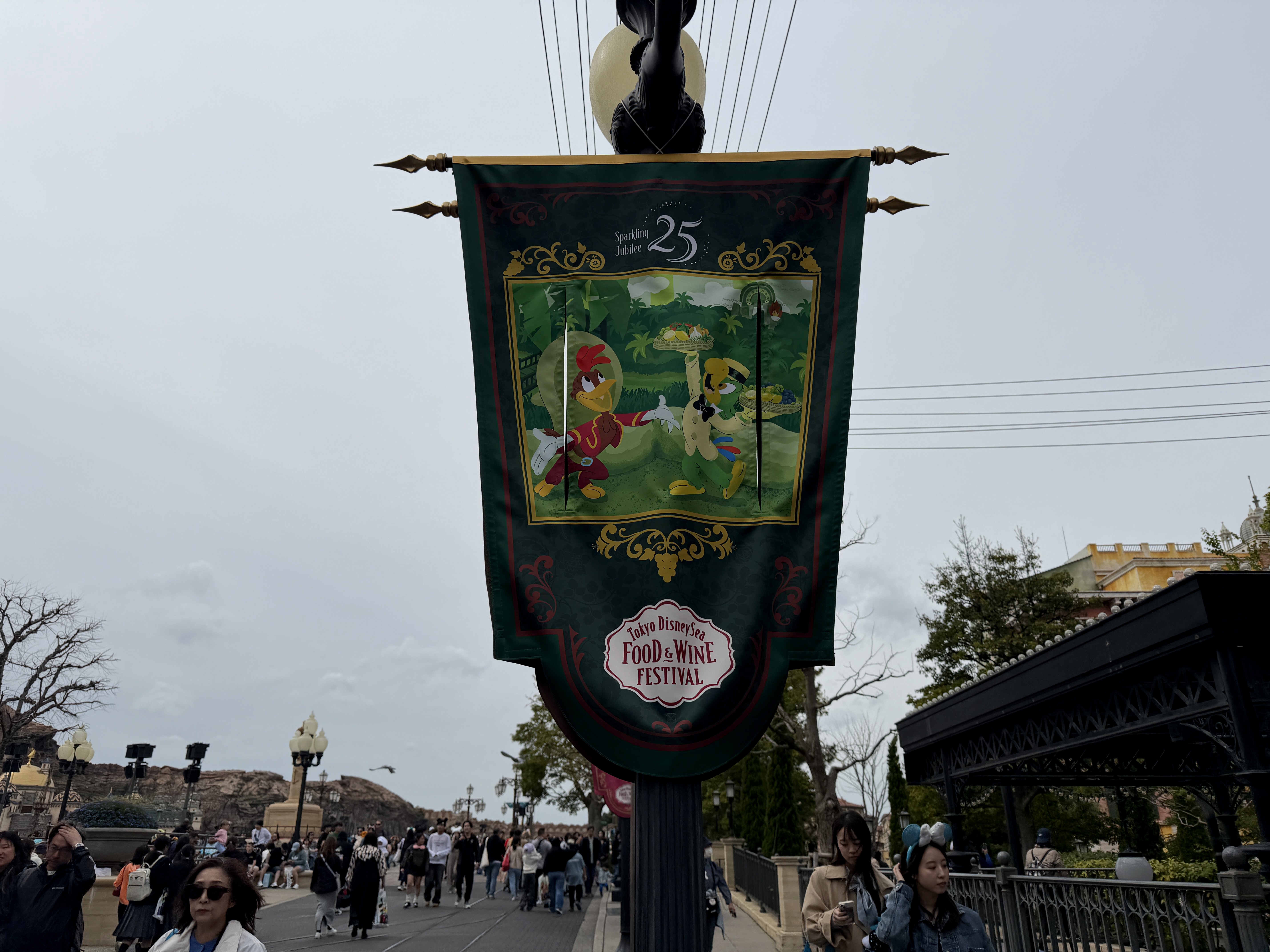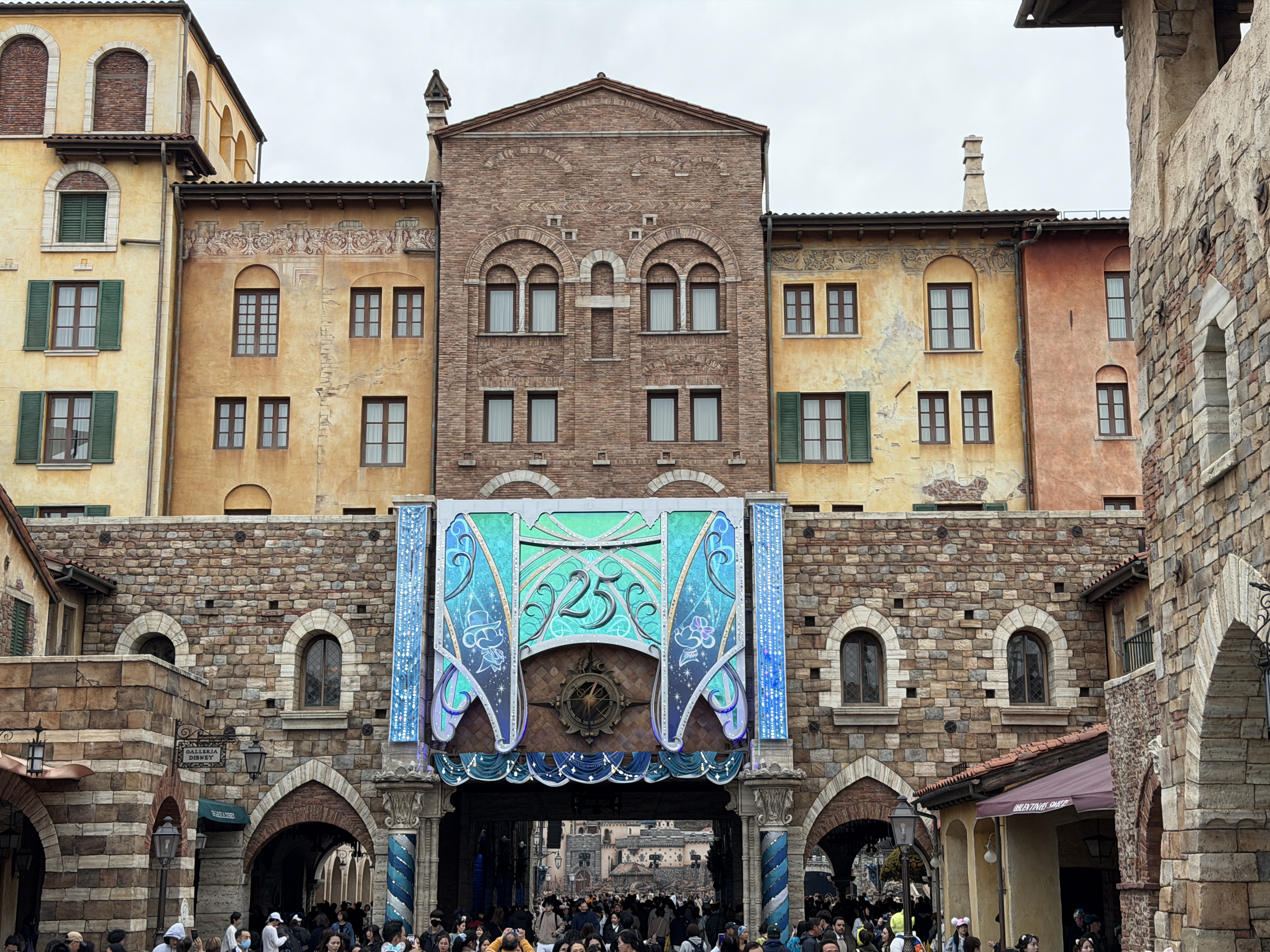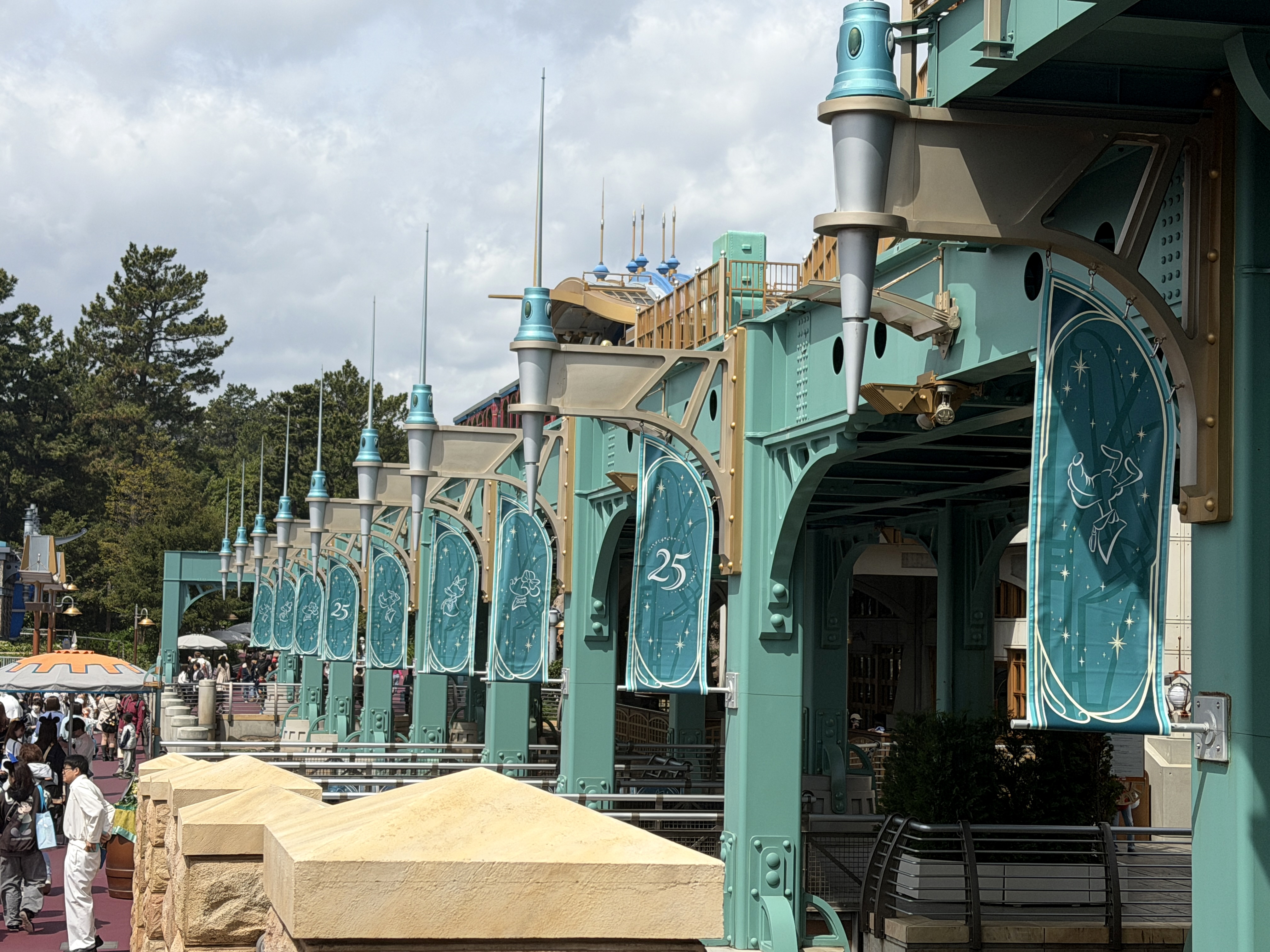 As part of the fun of the 25th anniversary celebration at Tokyo DisneySea - Sparkling Jubilee - the whole park features special decorations to mark the anniversary milestone. It all starts at the park entrance, where the AquaSphere has several embellishments to mark the occasion.