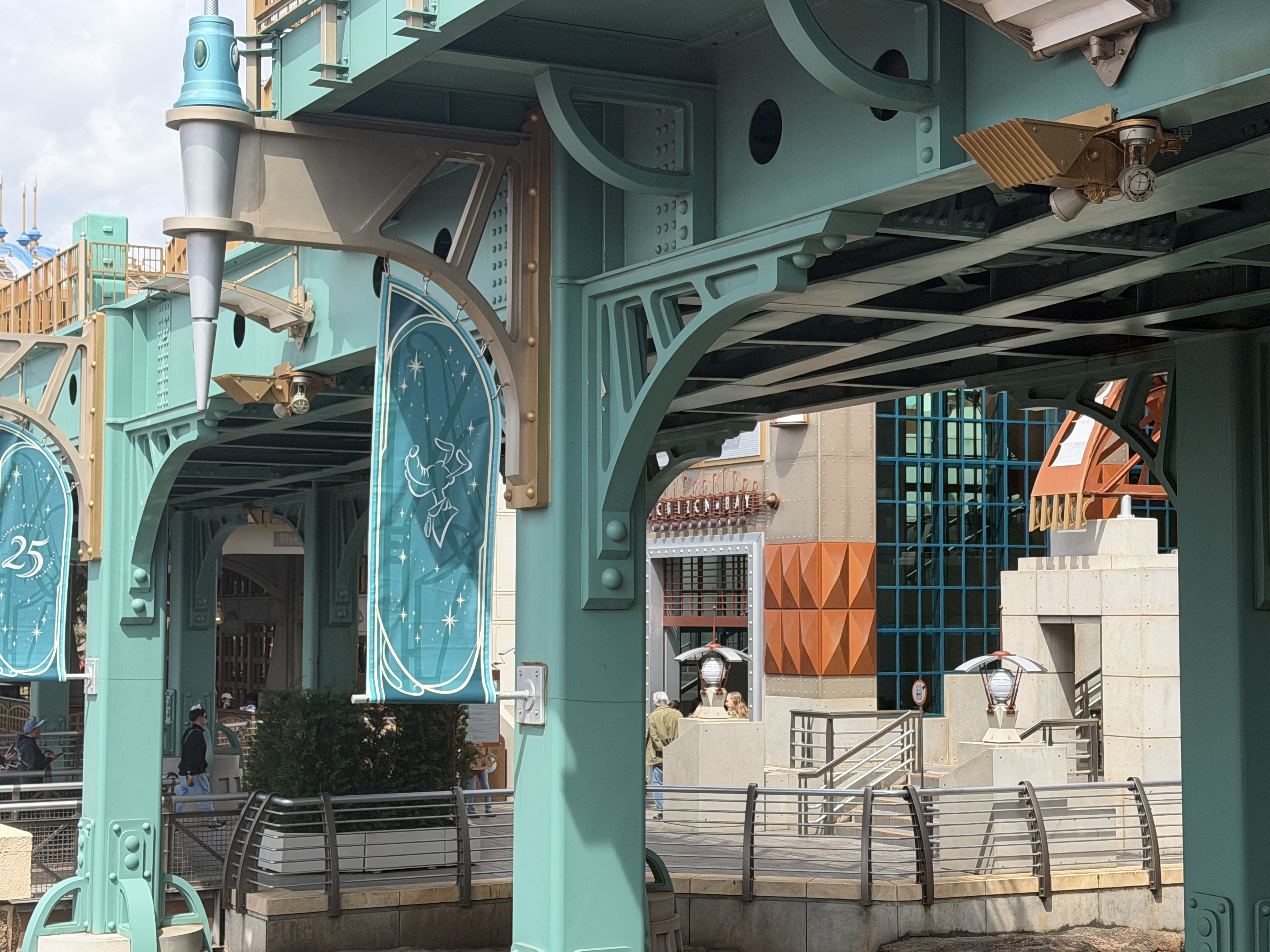 Most of the park is also adorned with banners, like the ones found here in Mysterious Island. Similar to others found throughout the park, these feature Mickey and Friends.