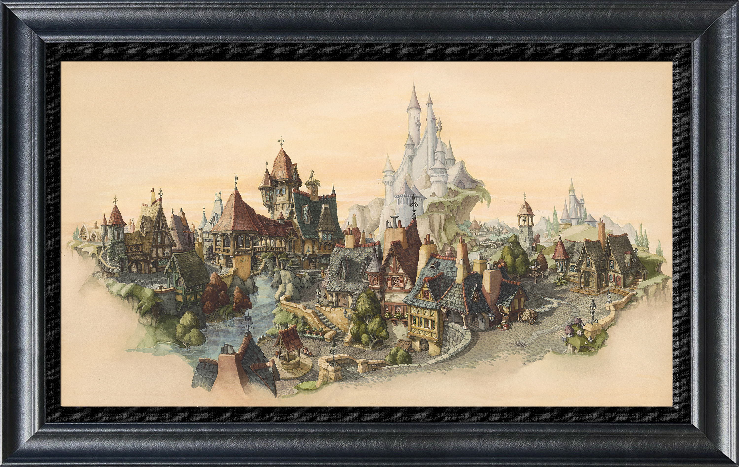 The second piece “Tyrolean Fantasy” (inspired by his mentor Claude Coats, who created the incredible backgrounds in Walt Disney’s classic 1940 animated feature Pinocchio) features storybook elements from many of the early Walt Disney Animated Classics.