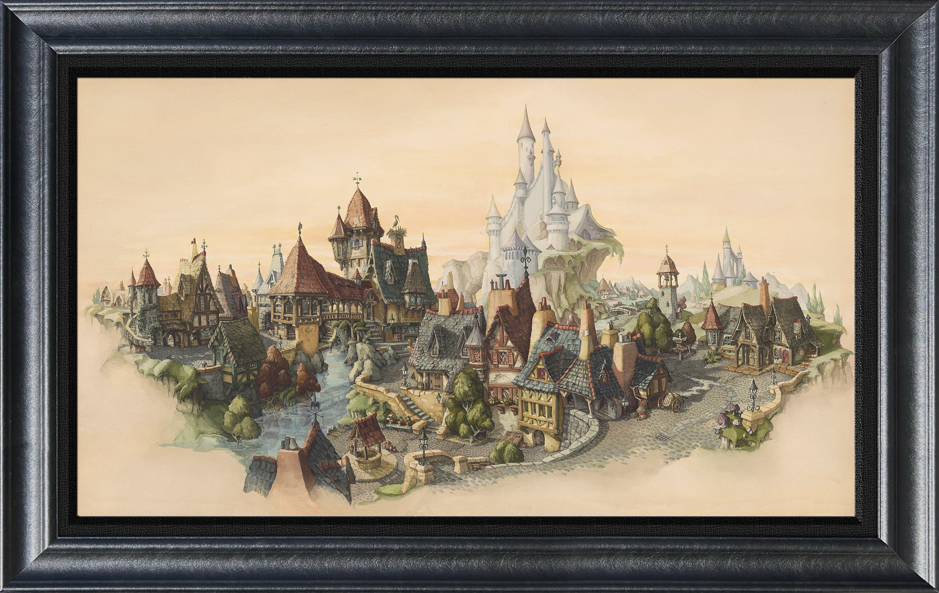 The second piece “Tyrolean Fantasy” (inspired by his mentor Claude Coats, who created the incredible backgrounds in Walt Disney’s classic 1940 animated feature Pinocchio) features storybook elements from many of the early Walt Disney Animated Classics.