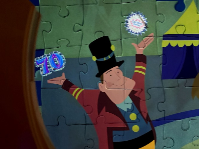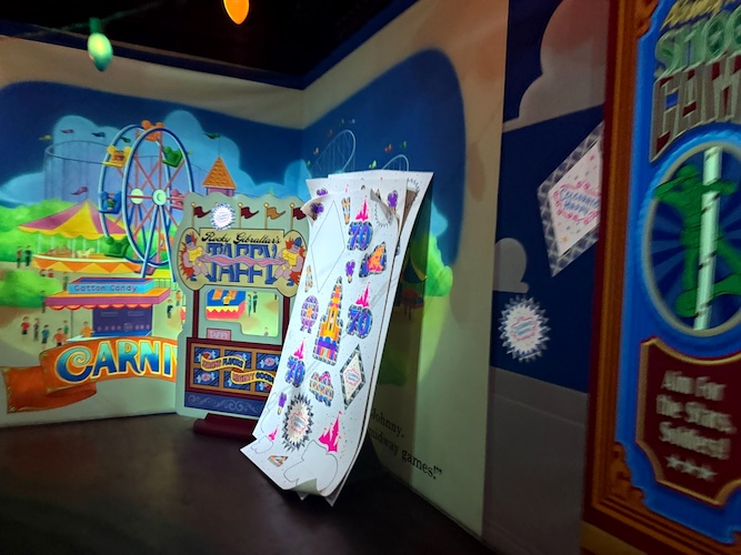 - While this is a screen-based attraction, the transitions between games feature physical sets. Many of these have also been updated with Disneyland 70th details.