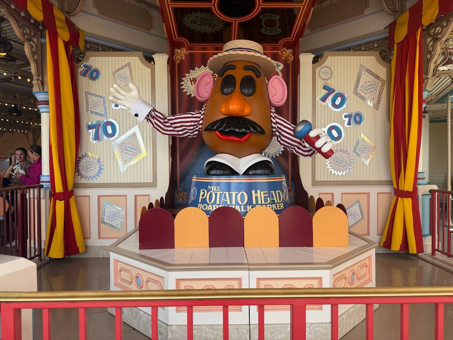 - On board the attraction, every single one of the games has been updated to feature similar decorations as the one by Mr. Potato Head. Some 100 point targets have even been updated to be 700 points with “70" logo stickers blocking the “10."