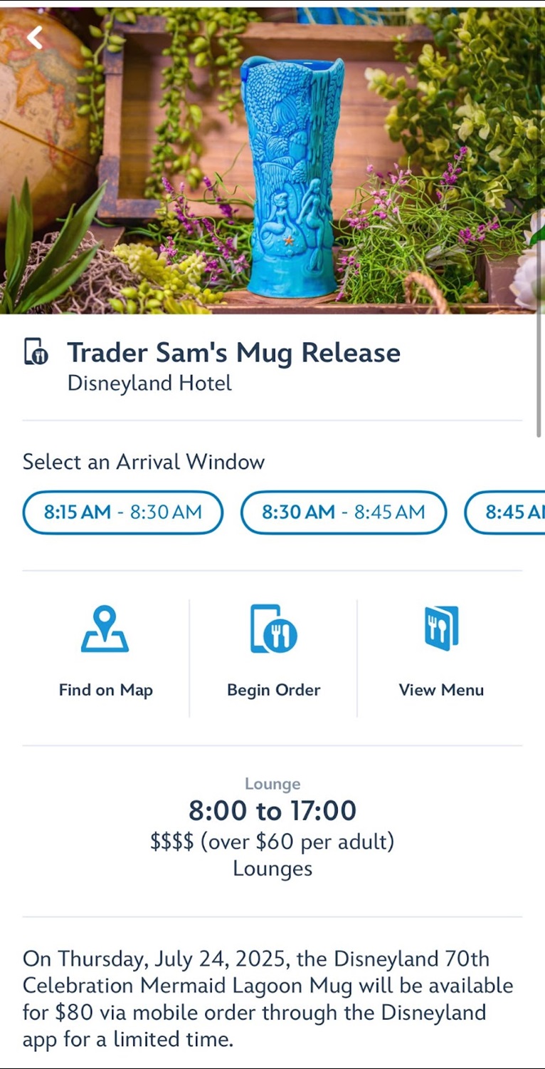 - The mug will only be available through the Mobile Order system via the Disneyland App for a limited time, retailing for $80.