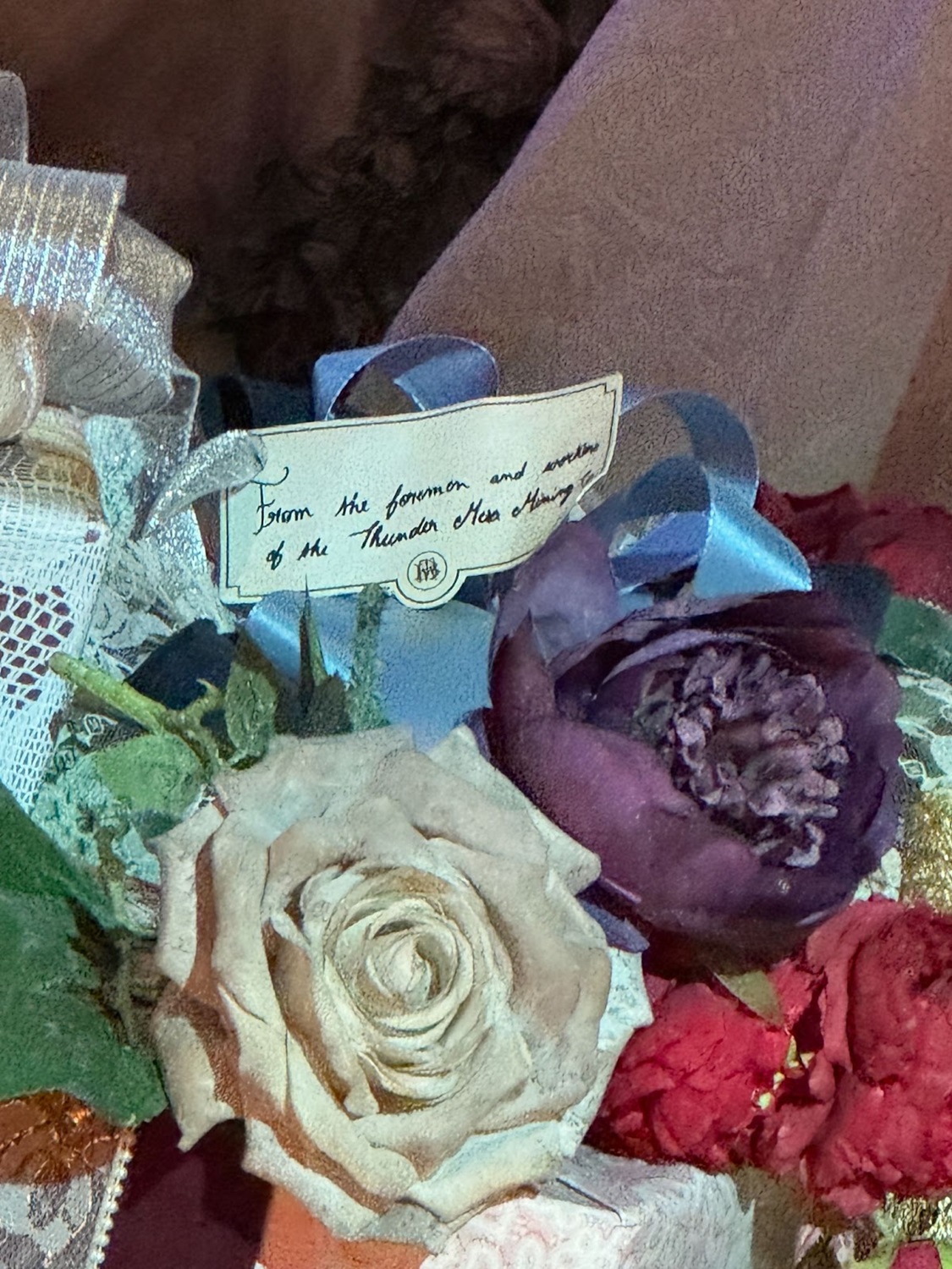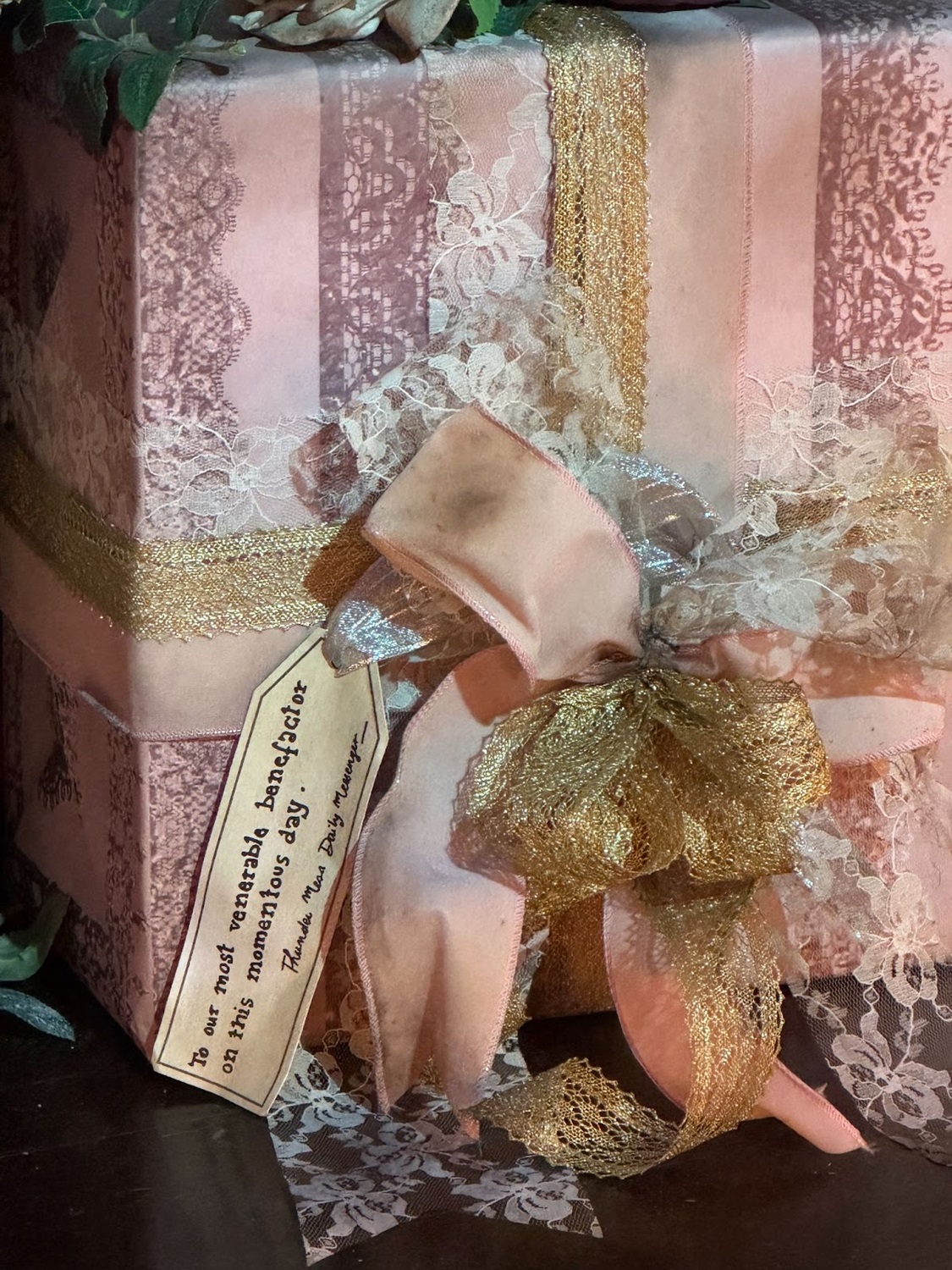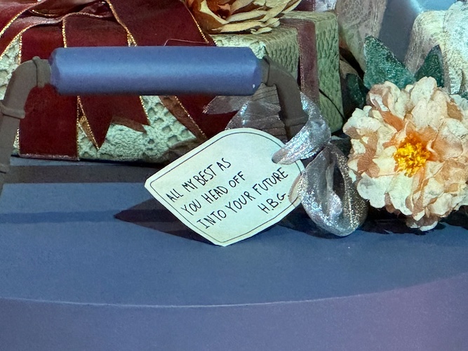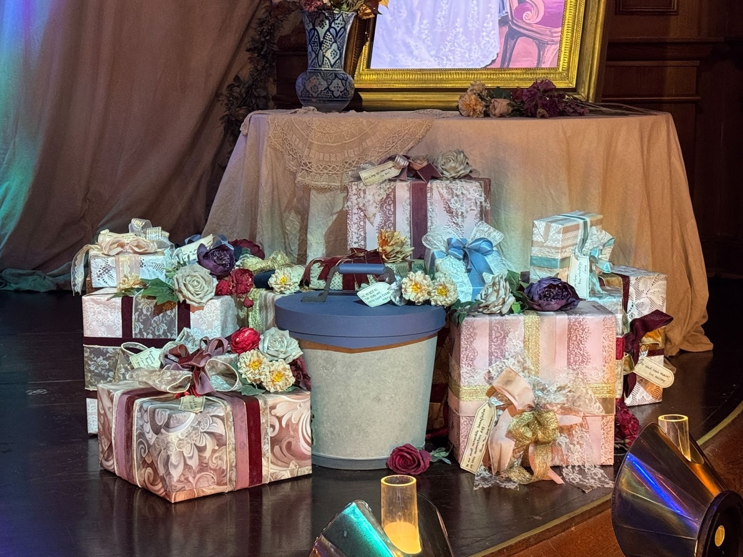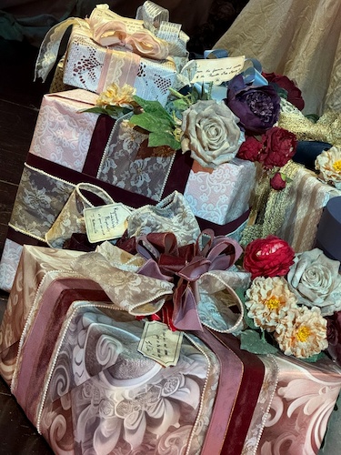 A pile of gifts are also found on the stage, complete with notes from well-wishers from the town of Thunder Mesa.