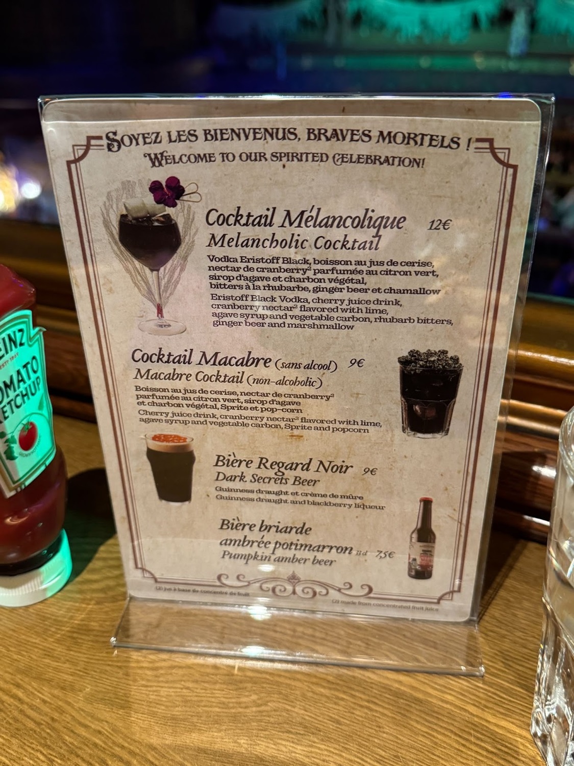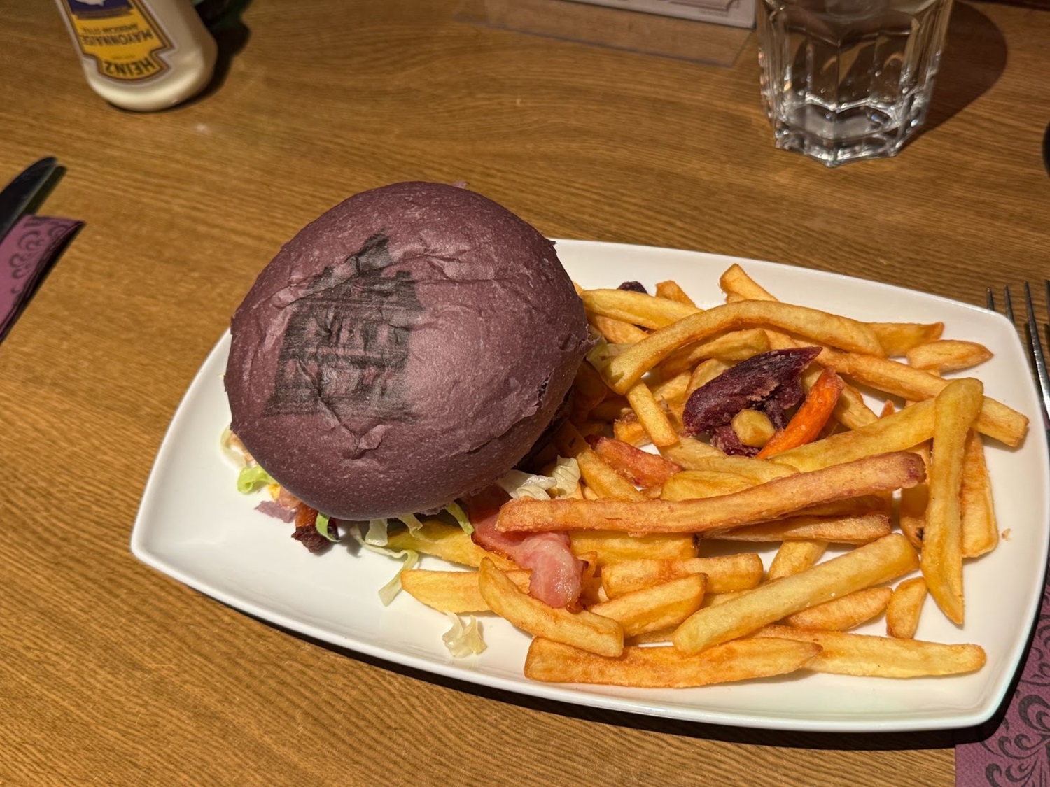 Of course, it wouldn’t be a proper restaurant overlay without some new food. Here you can get a special burger with a purple bun and the outline Phantom Manor imprinted upon it. The burger consists of pulled chicken, caramelised onion and black garlic sauce, Doritos, bacon, iceberg lettuce and Pepper Jack cheese, served with chips and sweet potato chips or fresh salad.