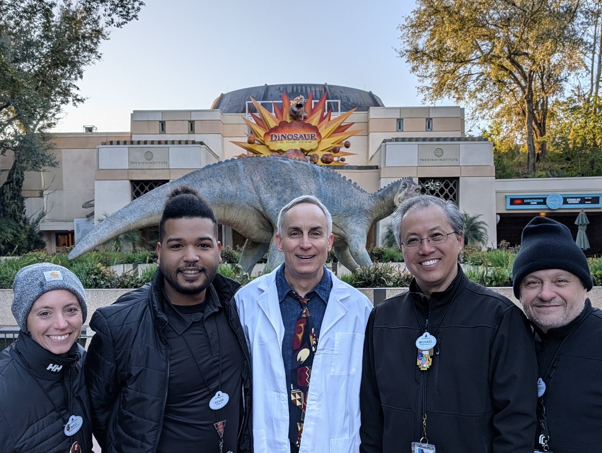 - Langham's visit to see DINOSAUR was revealed by the Rope Drop Humor Facebook page, where Disney photographer MIchael Huang posted a photo of himself with Langham and other cast members. Langham was Seeker-ready in a lab coat, and Huang wrote, "This morning, I met this guy in a white lab coat who tried to get me and my friends into a Time Rover. Granted, it was tempting. But, it was not something we were seeking this cold, cold morning. So, we politely declined."