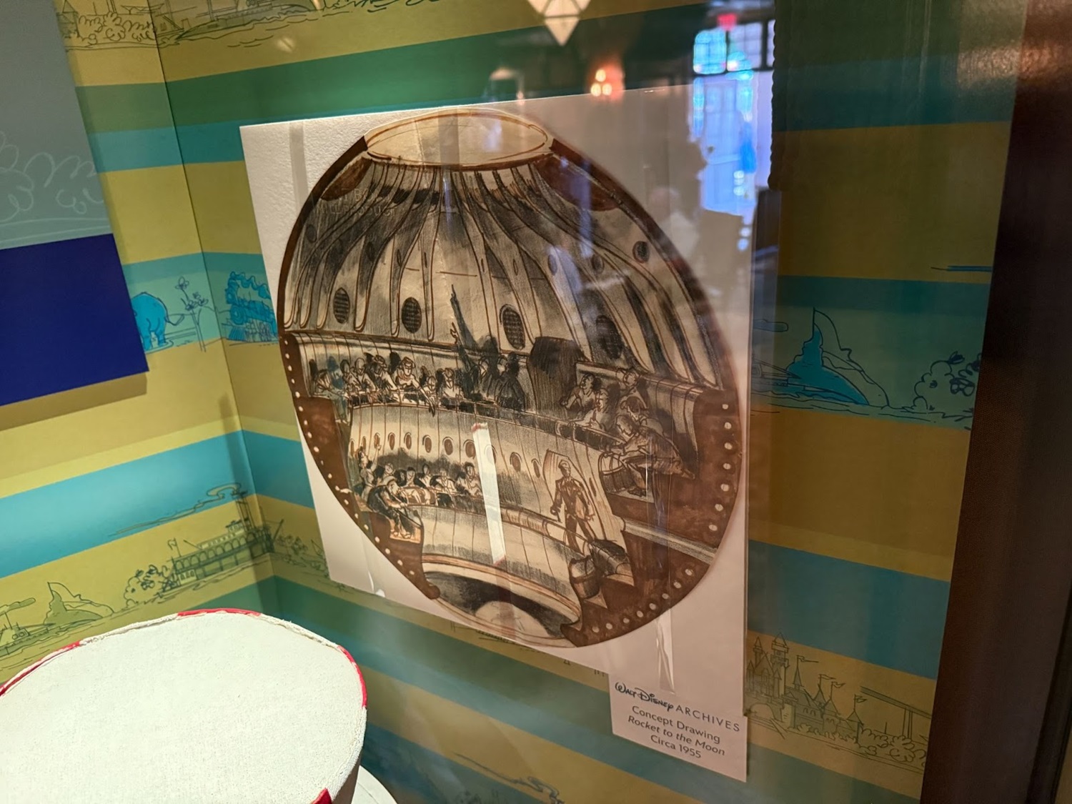 - The window display located inside of the restaurant features props from attractions, souvenirs and more from the resort’s long history.