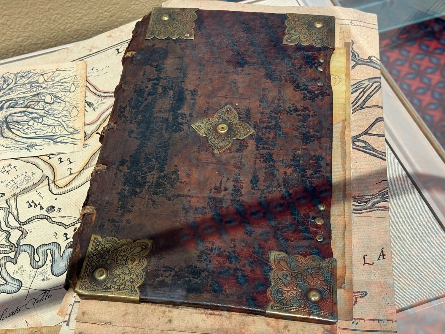 Boots worn by Imagineer Joe Rohde during various research trips and his sketchbook from a 2005 trip to Nepal are prominently on display.