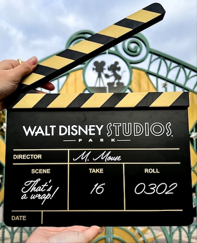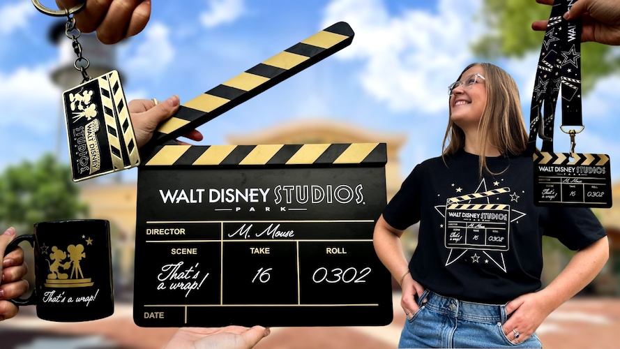 - And a clapperboard keychain with the Walt Disney Studios logo on the front, and “That’s a wrap!" clapperboard design on the rear.
