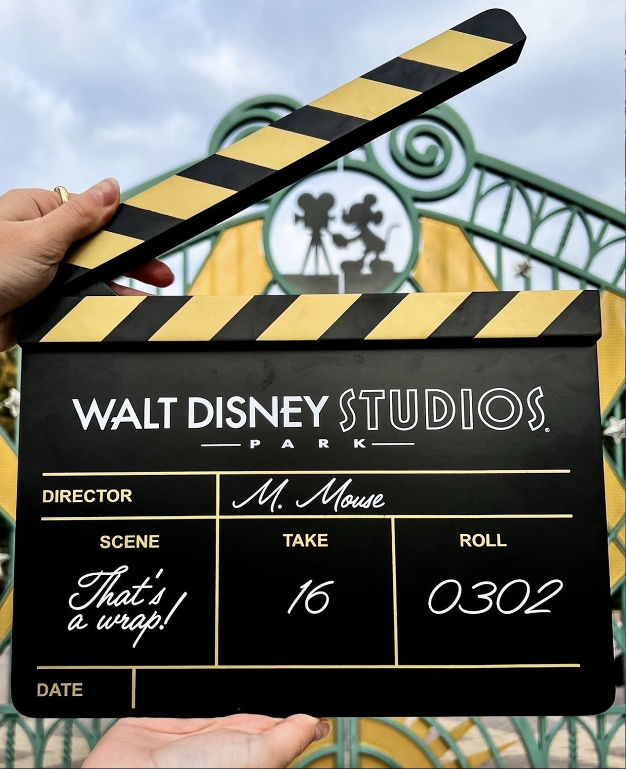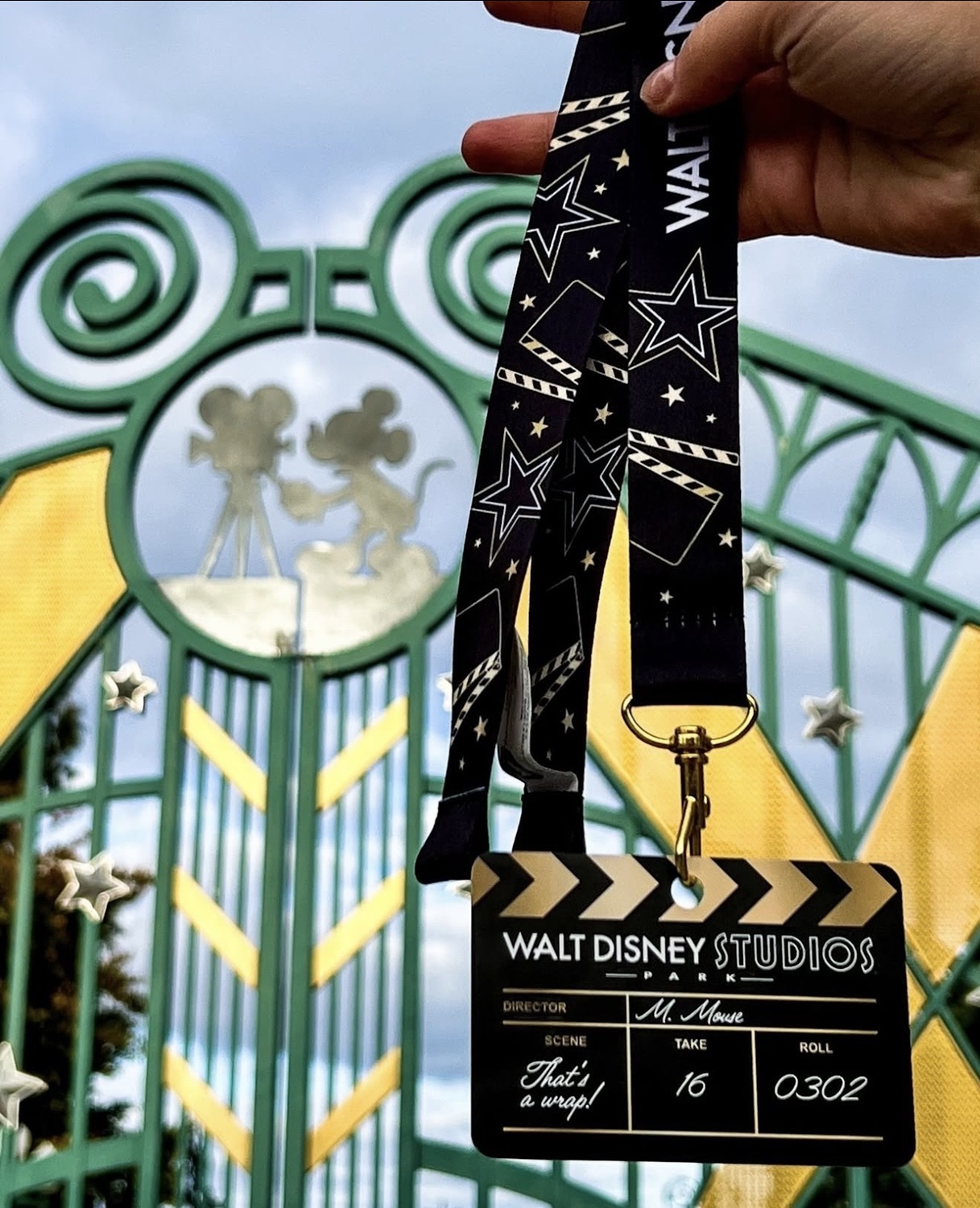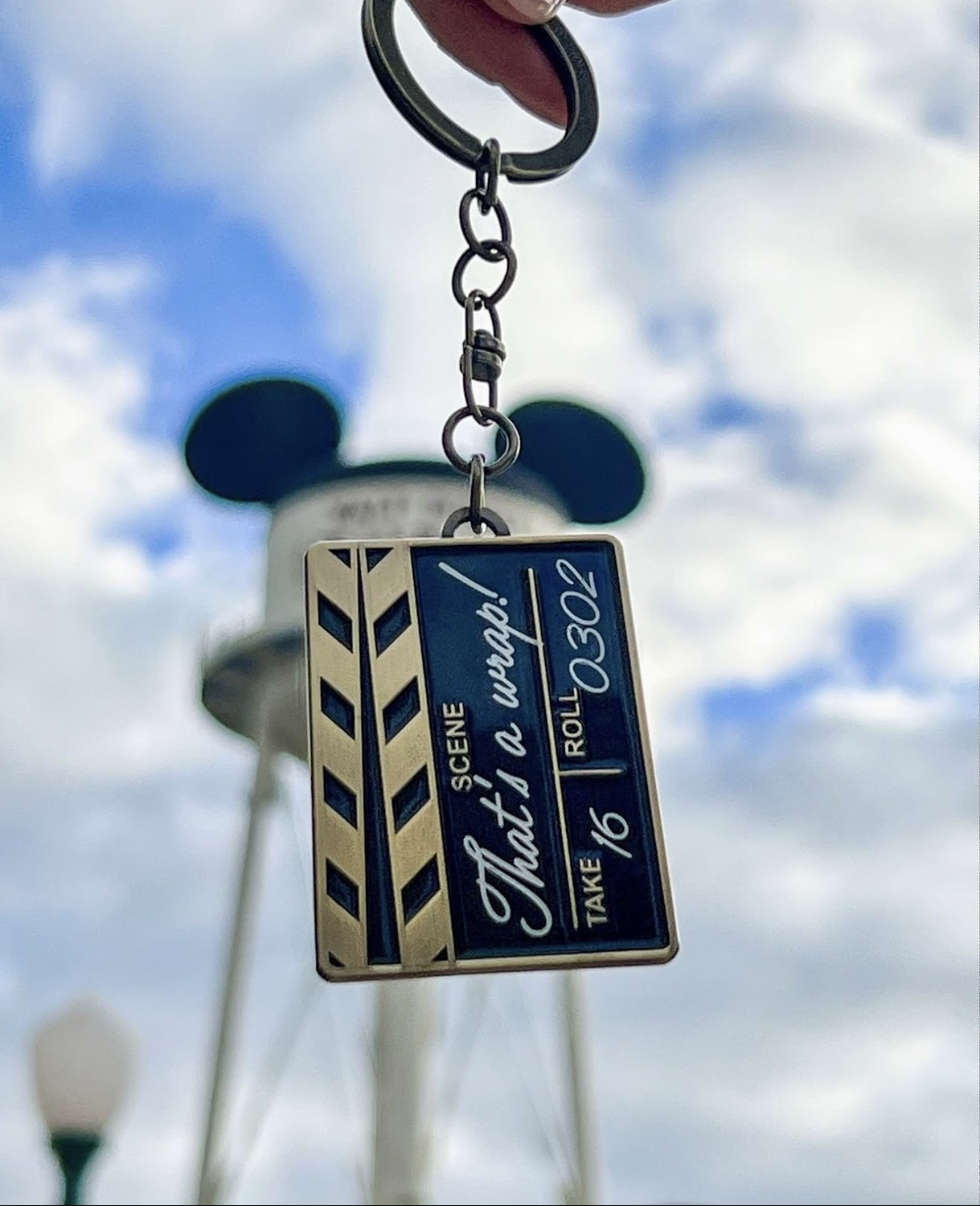 - And a clapperboard keychain with the Walt Disney Studios logo on the front, and “That’s a wrap!" clapperboard design on the rear.