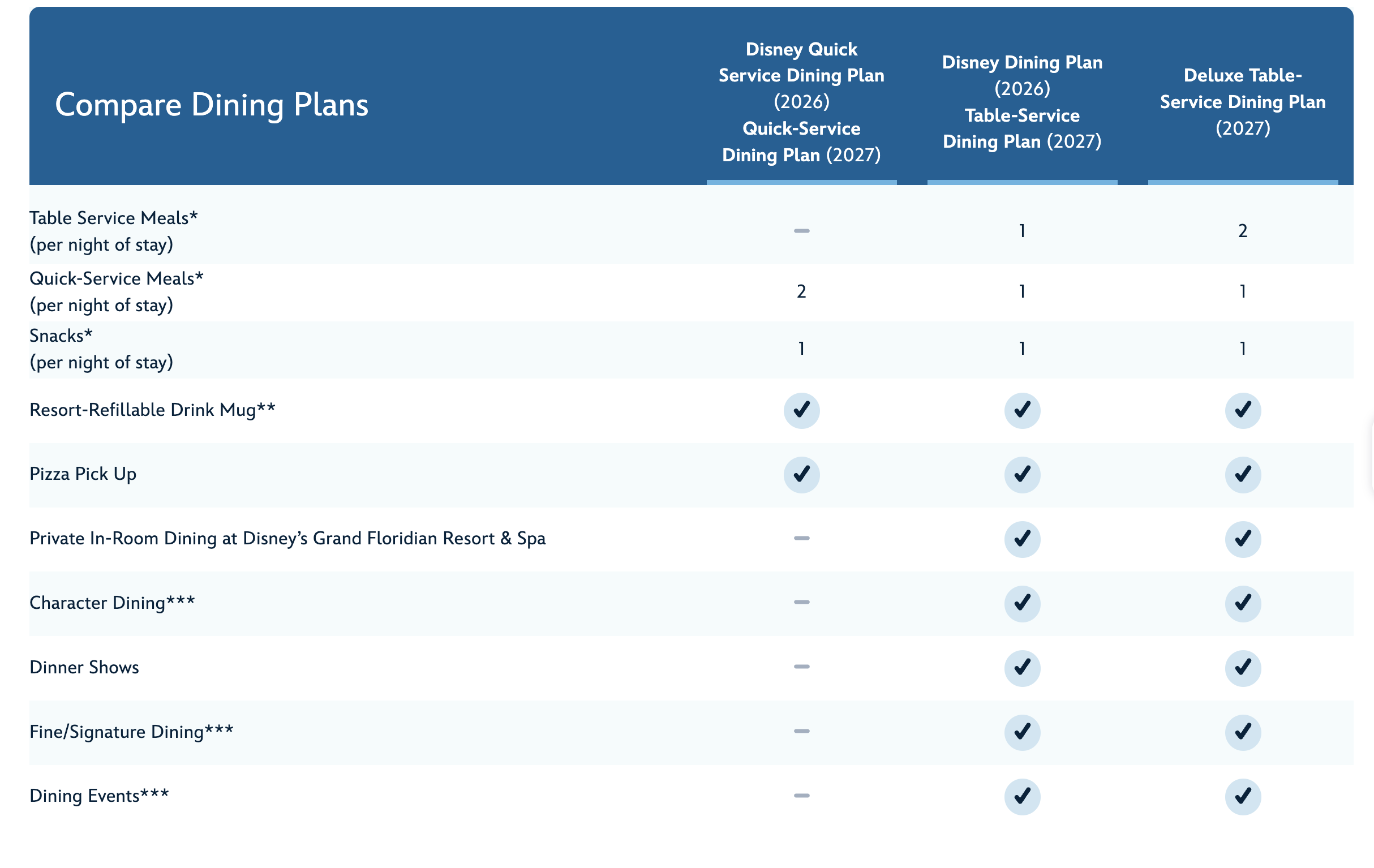 - Starting in 2027, the Disney Dining Plan will become the Table-Service Dining Plan, while the Disney Quick-Service Dining Plan will simply become the Quick-Service Dining Plan.