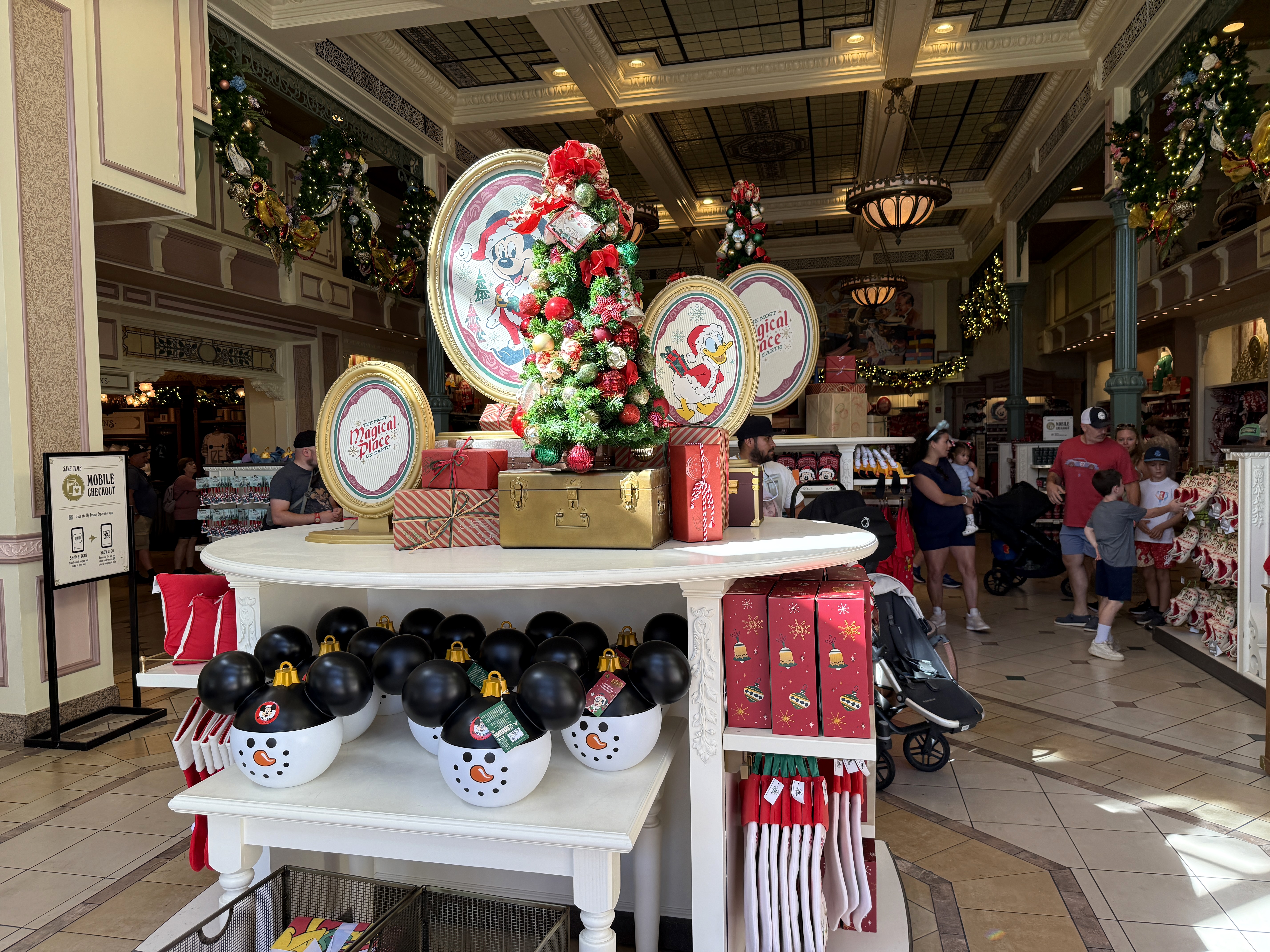 The in-process holiday makeover is clear once you enter Magic Kingdom, where a couple of winter-ready Mickey and Minnie topiaries greet you by the train station, while the station itself now boasts some decoration.