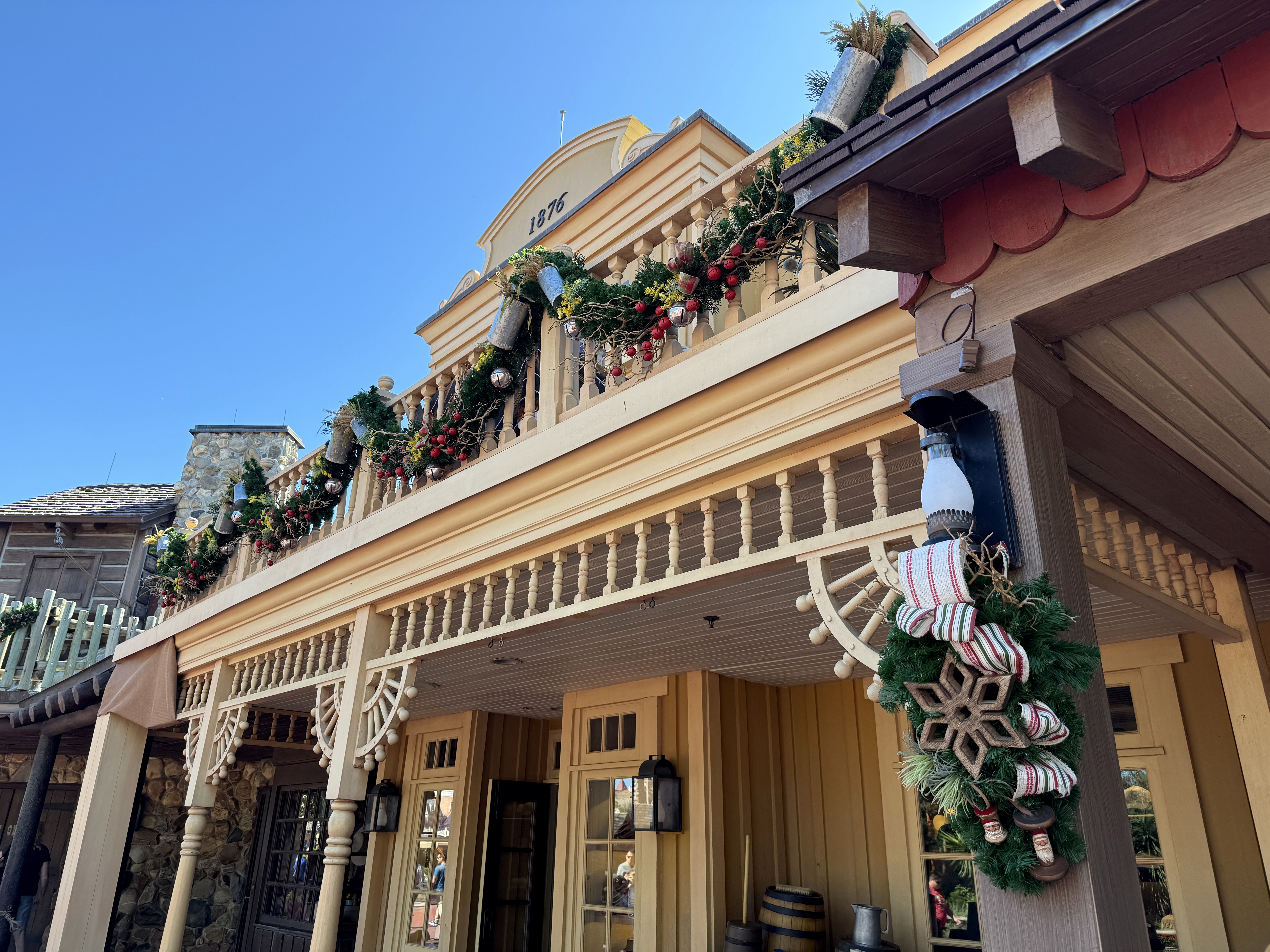 The holiday makeover can also be found in other areas beyond Main Street, with Frontierland's restaurants and storefronts decorated.