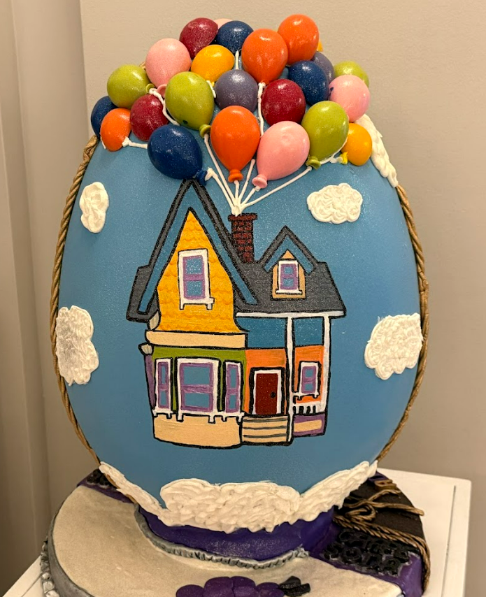 This egg is inspired by Up and features a painted picture of Carl's house with 3D modeled balloons and clouds above it.