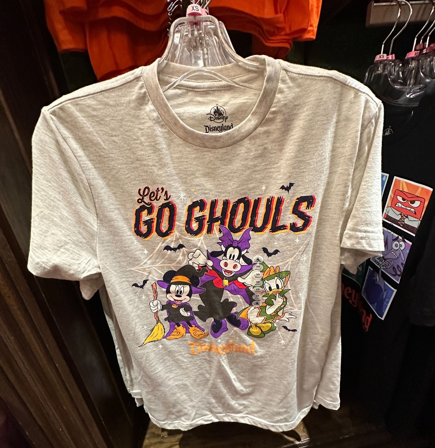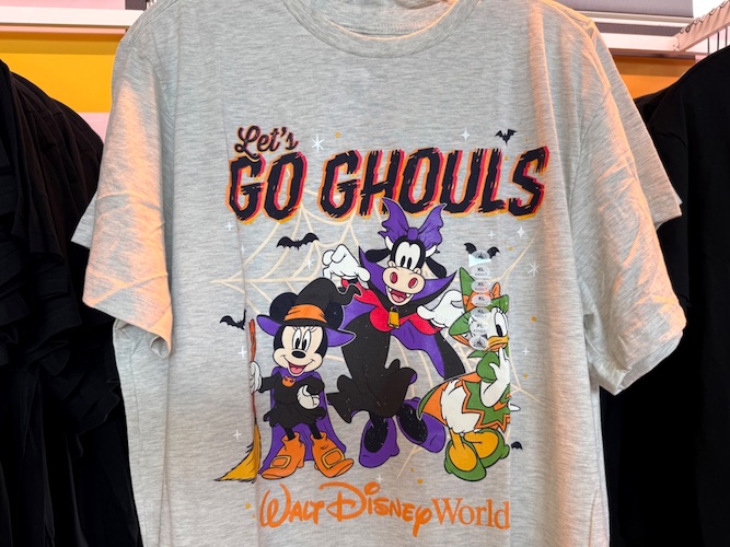 Minnie, Clarabelle and Daisy are costumed up for Halloween in the “Let’s Go Ghouls" shirt.