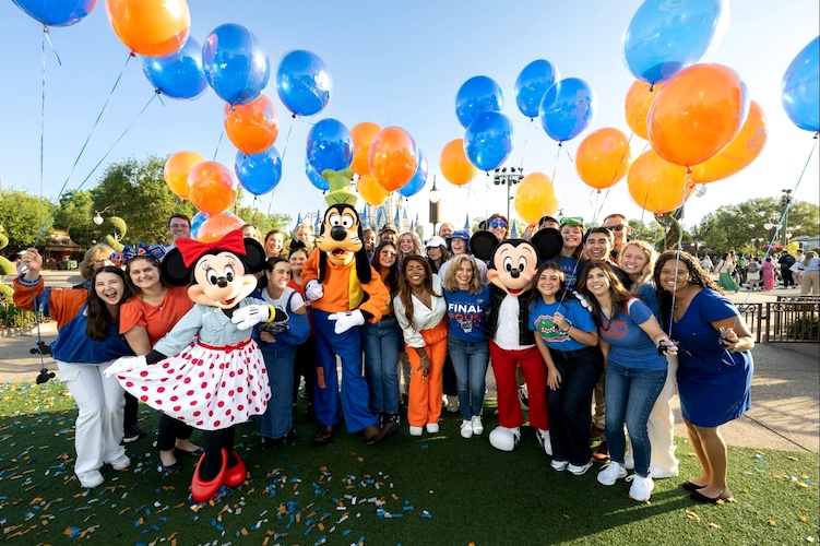 - The committed cast members, dressed in the bright orange and blue representing Florida's school colors, commemorated the historic victory with cherished Disney characters Mickey Mouse, Minnie Mouse, and Goofy, showcasing their excitement for this event.