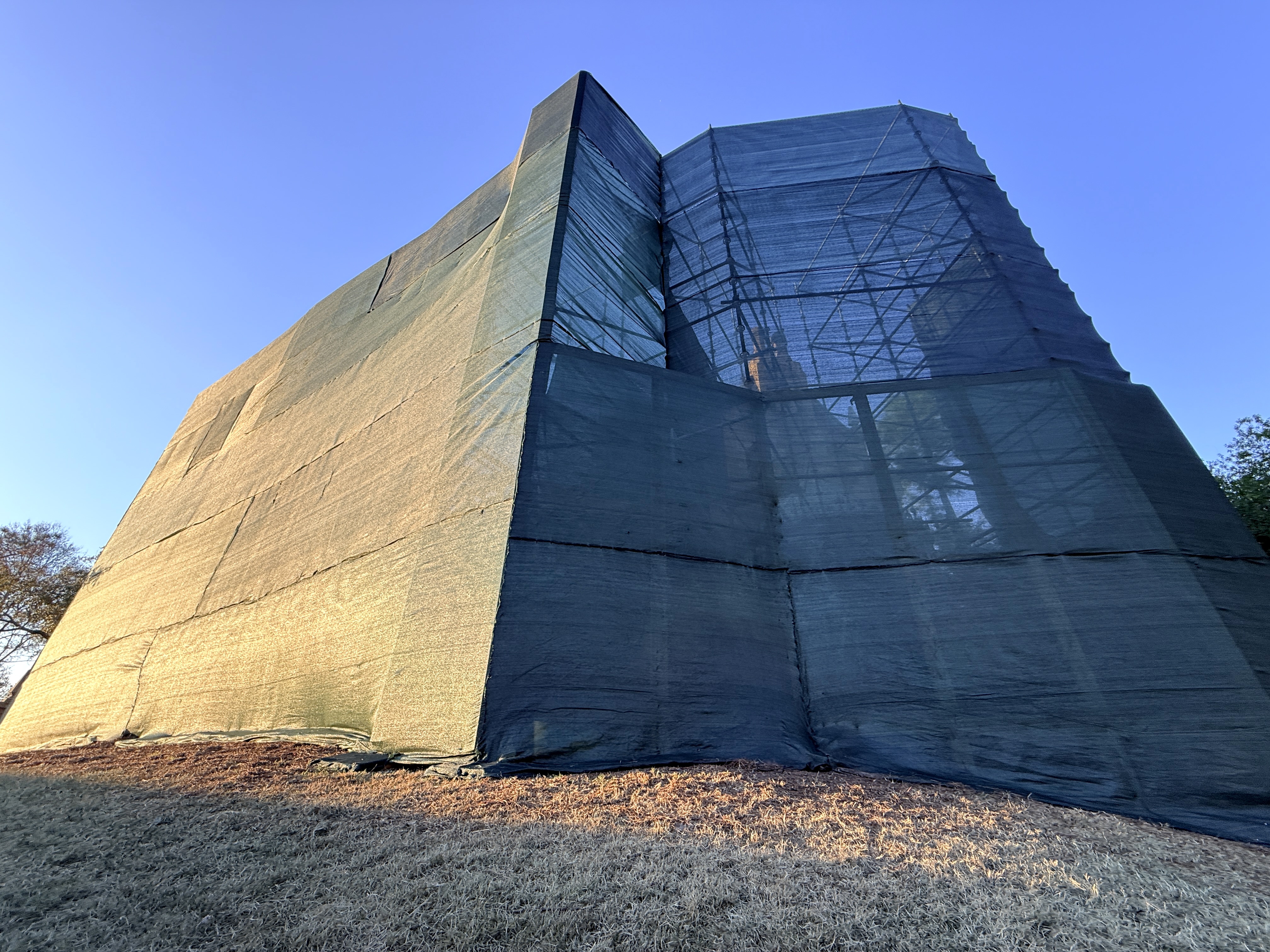 - The lawn in front of the Mansion was also cleared of its foliage in preparation for the work.