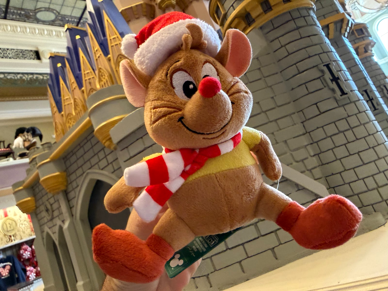 The Emporium on Magic Kingdom’s Main Street U.S.A. is what drew is in today, and right off the bat, we have a new shoulder plush that we’re sure we will see around the parks this holiday season - Gus from Cinderella in festive Santa hat and scarf, ready to rest on the shoulders of many parkgoers.