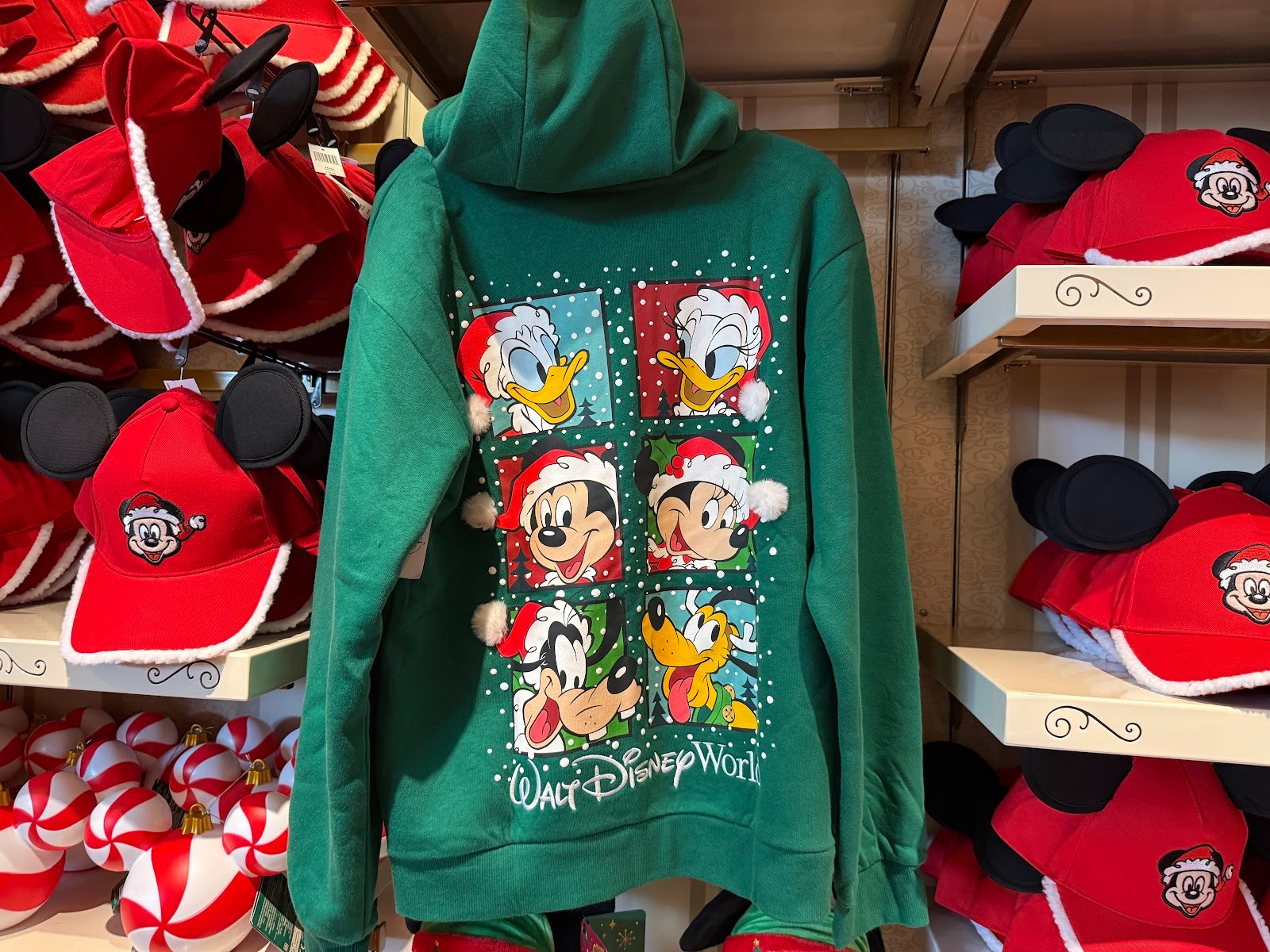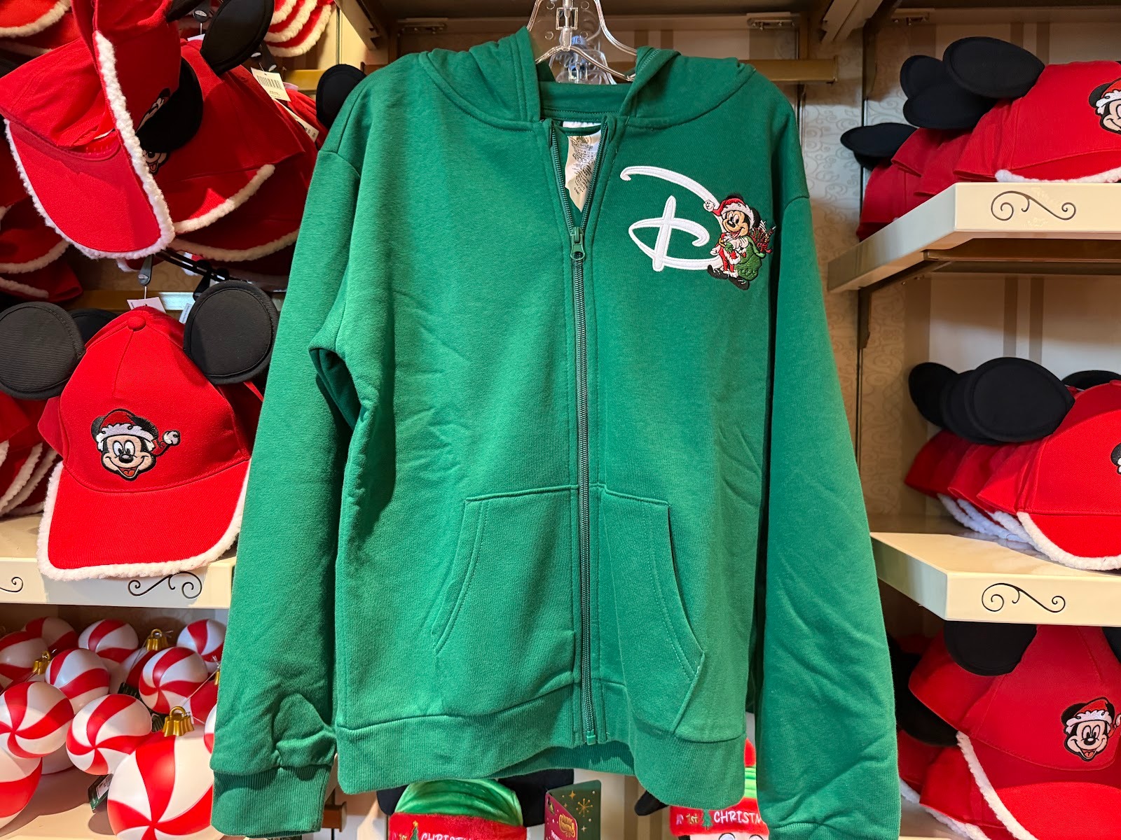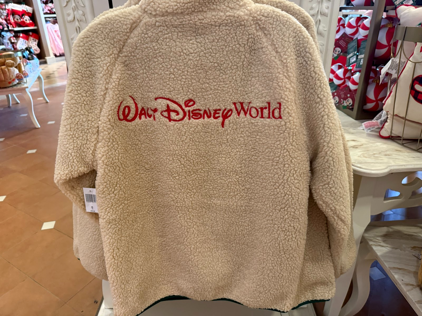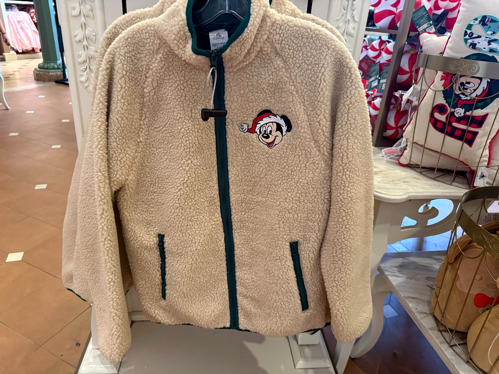 Another zip sweater ($99.99) can be found, featuring Santa Mickey on the front and a generic Walt Disney World logo across the back, this one a bit thicker with a heavy fleece.