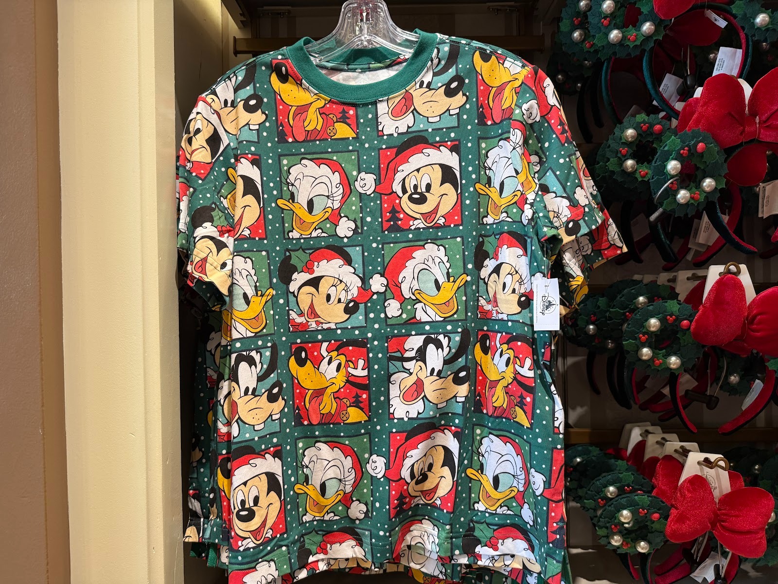 More appropriate for some of the Florida heat in the winter months, some t-shirts can also be found, including a deep V-neck similar to the sweater, and another with the square prints of the characters in Santa Hats can both be picked up for $34.99 each.
