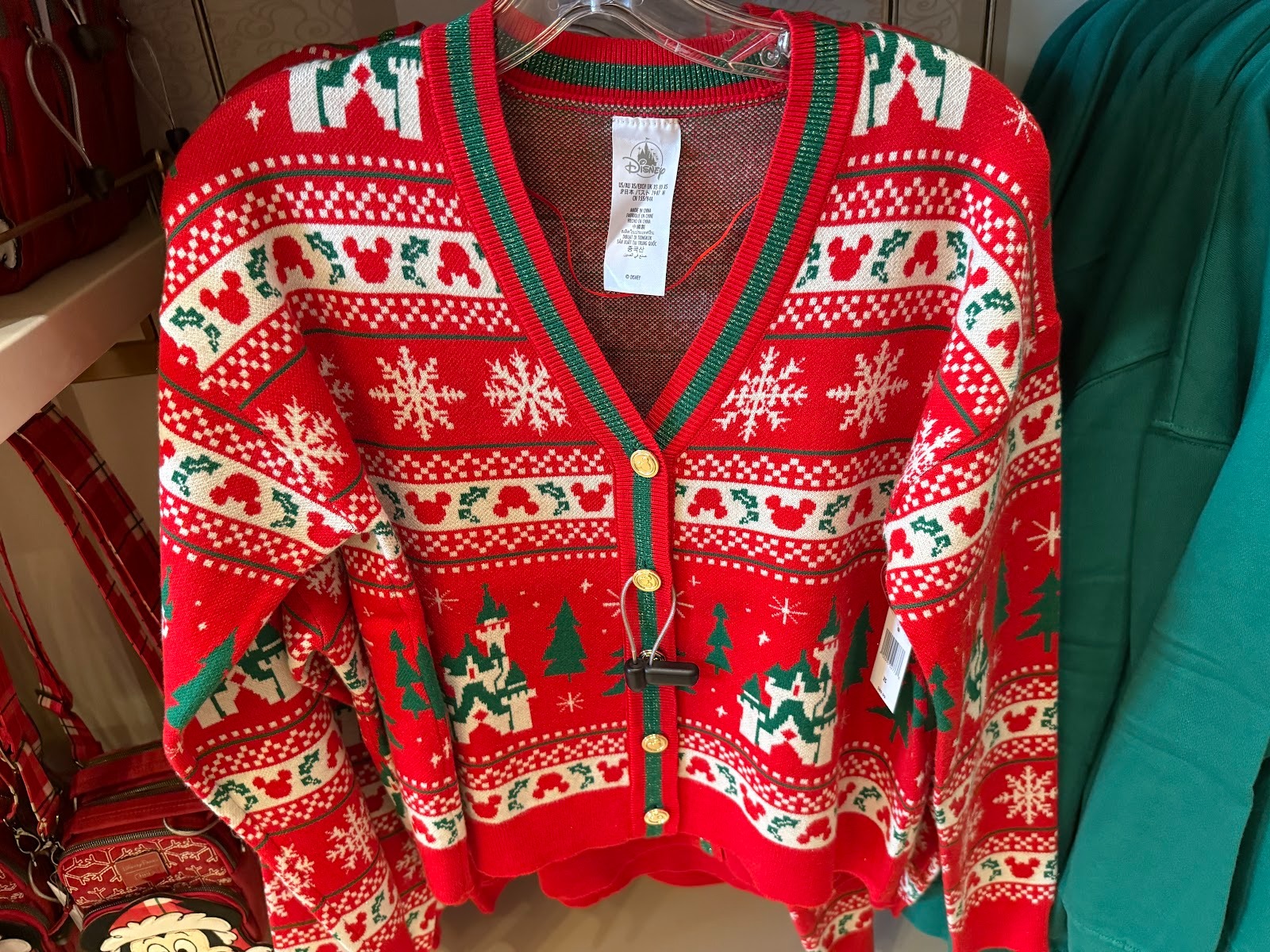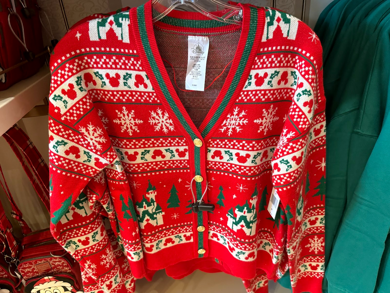 A cardigan was also spotted nearby ($89.99), with a pattern more akin to a traditional Christmas sweater, again with the unspecified Disney Parks castle.