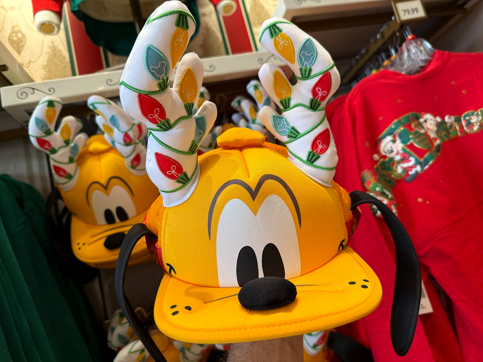 Pluto gets in the fun in the form of a festive cap ($34.99) that features antlers with printed Christmas lights.