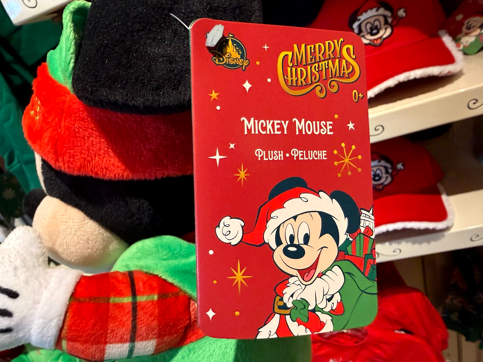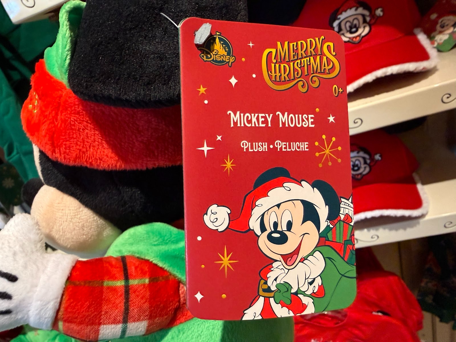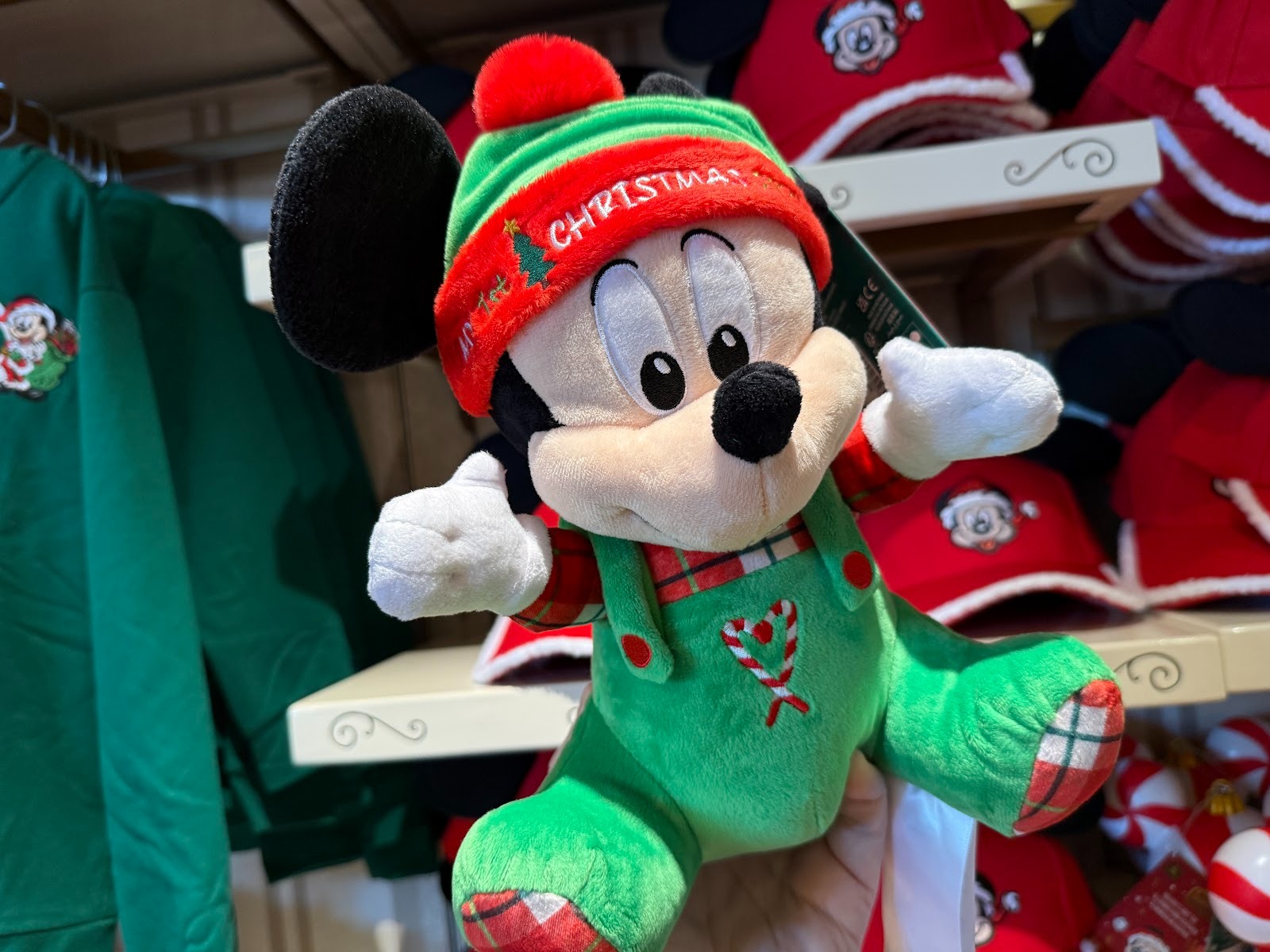 A holiday Mickey plush ($24.99), featuring a fun Elf-like holiday outfit, is also found nearby.