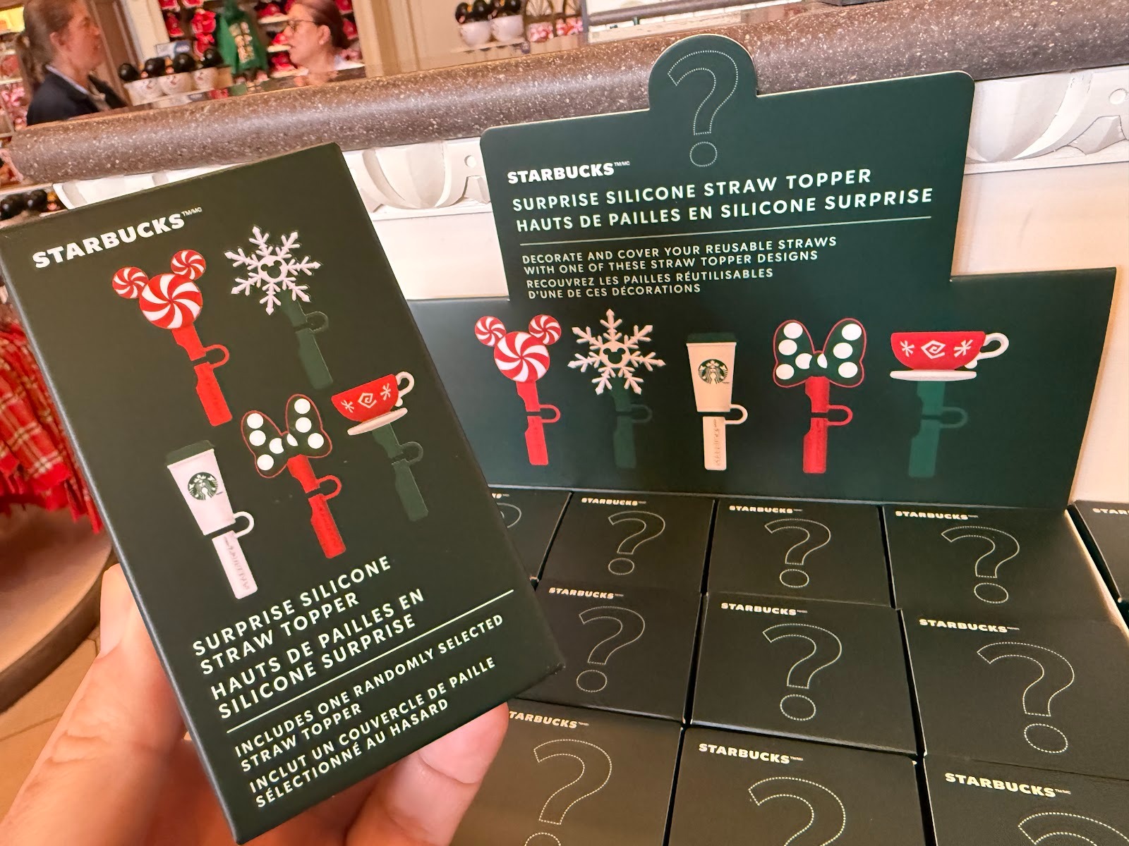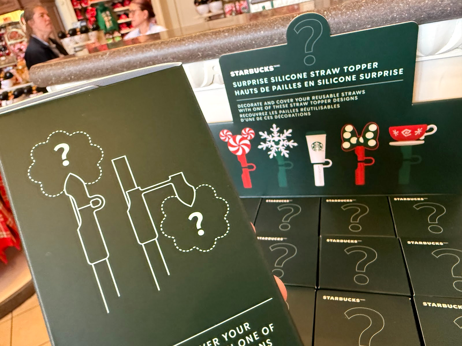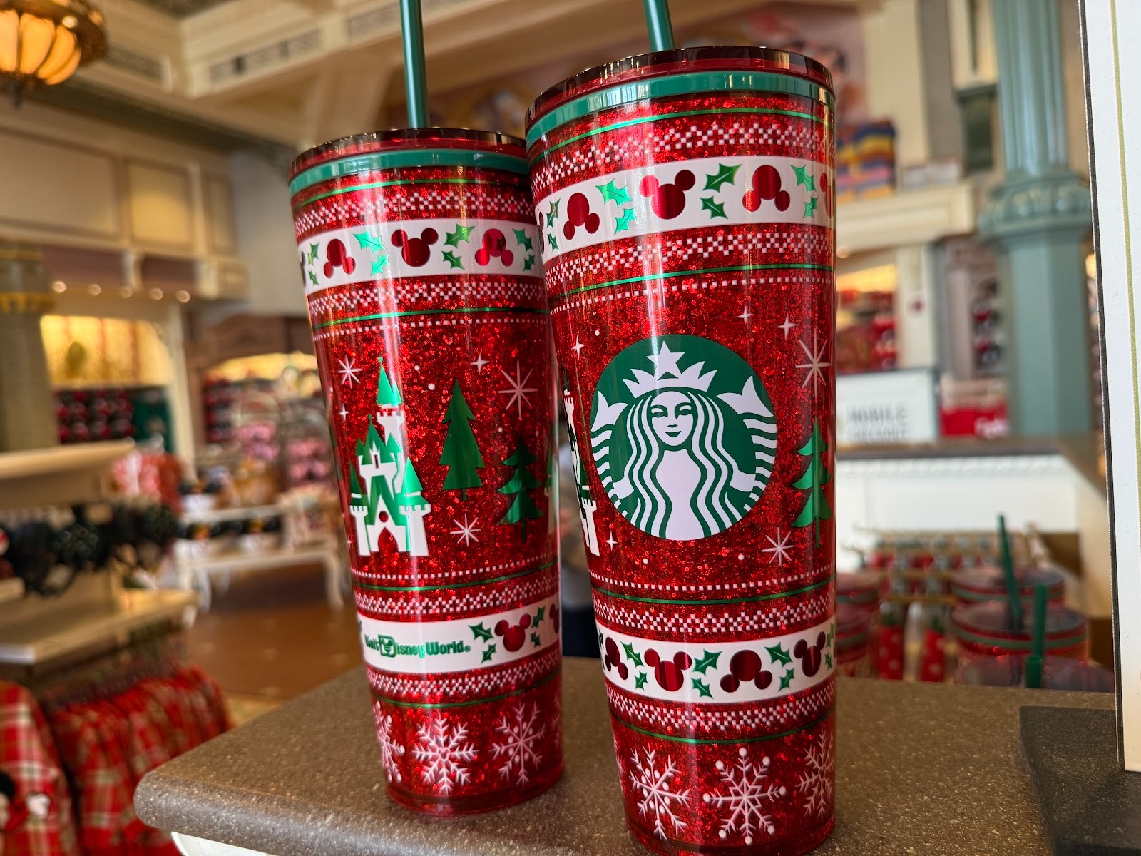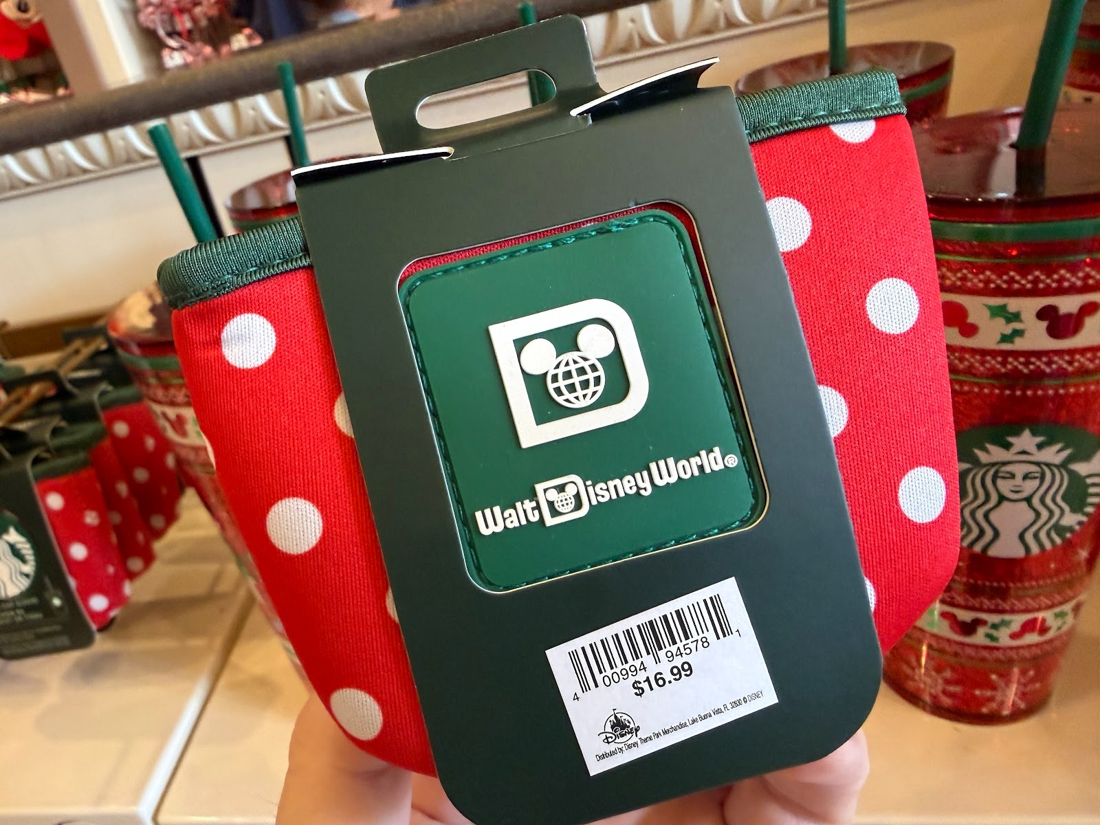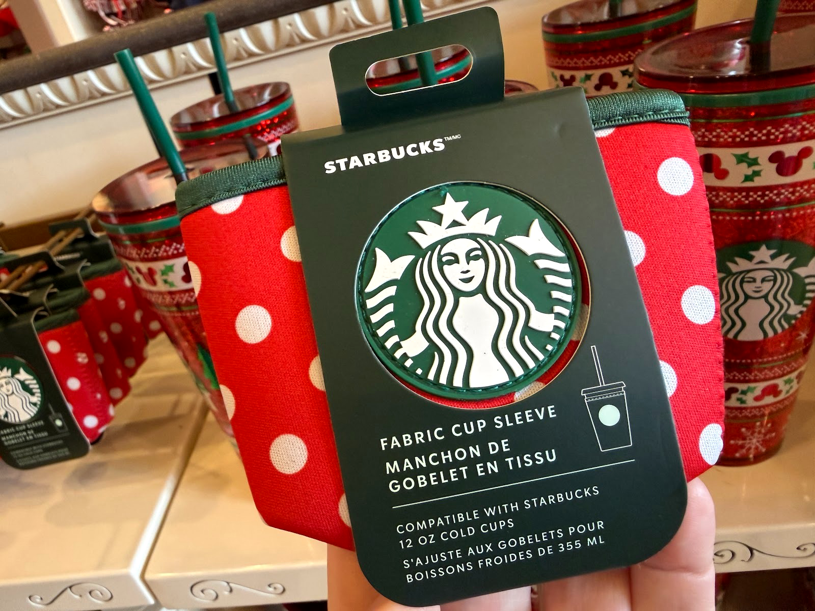 Even Starbucks isn’t immune to the Holiday fun. Festive Disney themed straws can be picked up ($14.99), along with fabric cup sleeves ($16.99) and a special tumbler carrying over the Christmas sweater design with a Disney castle and the Starbucks logo ($34.99).