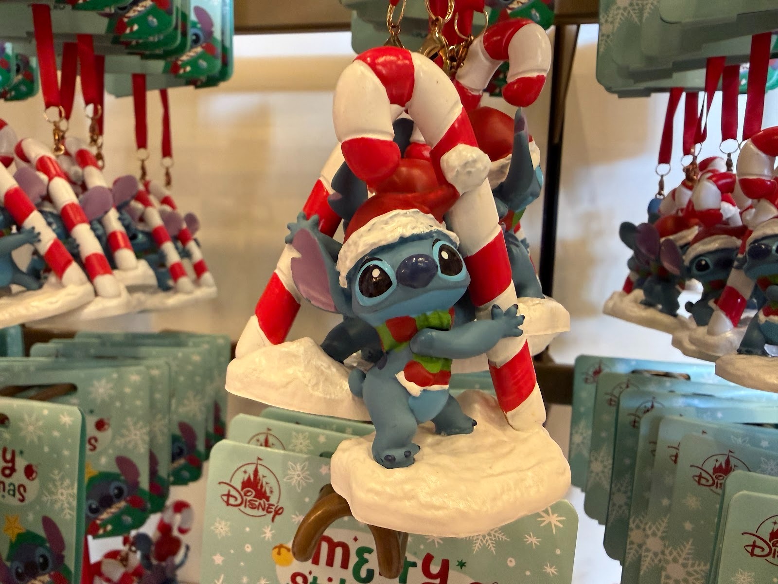 Stitch takes center stage on an ornament featuring the loveable character with a candy cane ($26.99) and a full set of Disney Wishables in blind boxes ($17.99).