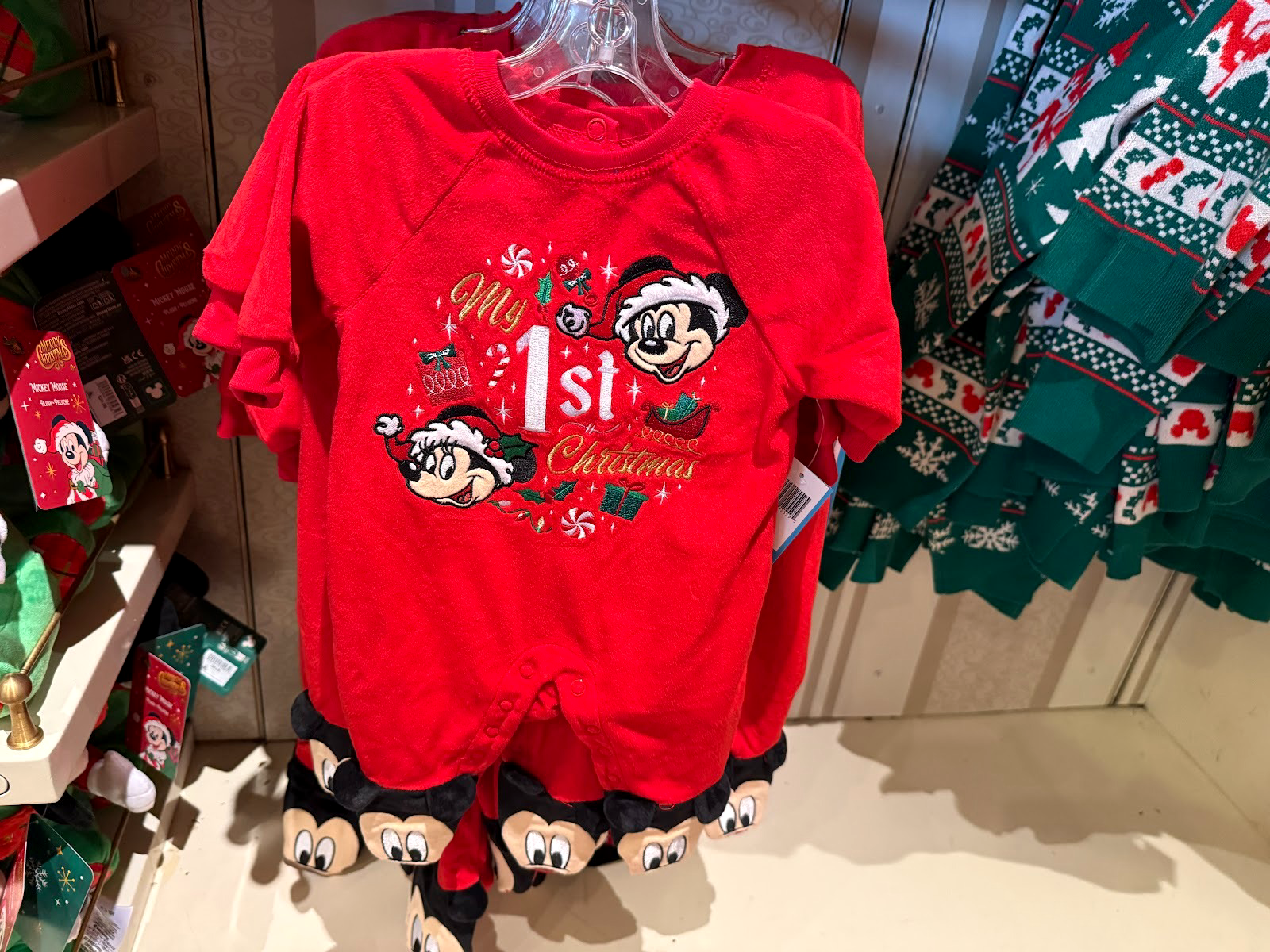 Next we get to some apparel, including a traditional Christmas sweater ($59.99) featuring an unnamed castle (read: get ready for it to appear at Disneyland as well), a green zip hoodie ($49.99) with the classic D-logo and Mickey on the front, with a number of other characters in Santa hats in a square pattern on the back. The younger set - specifically so young that it’s their first Christmas - can find a jumper ($31.99) with our wintery-themed mice friends marking the occasion.