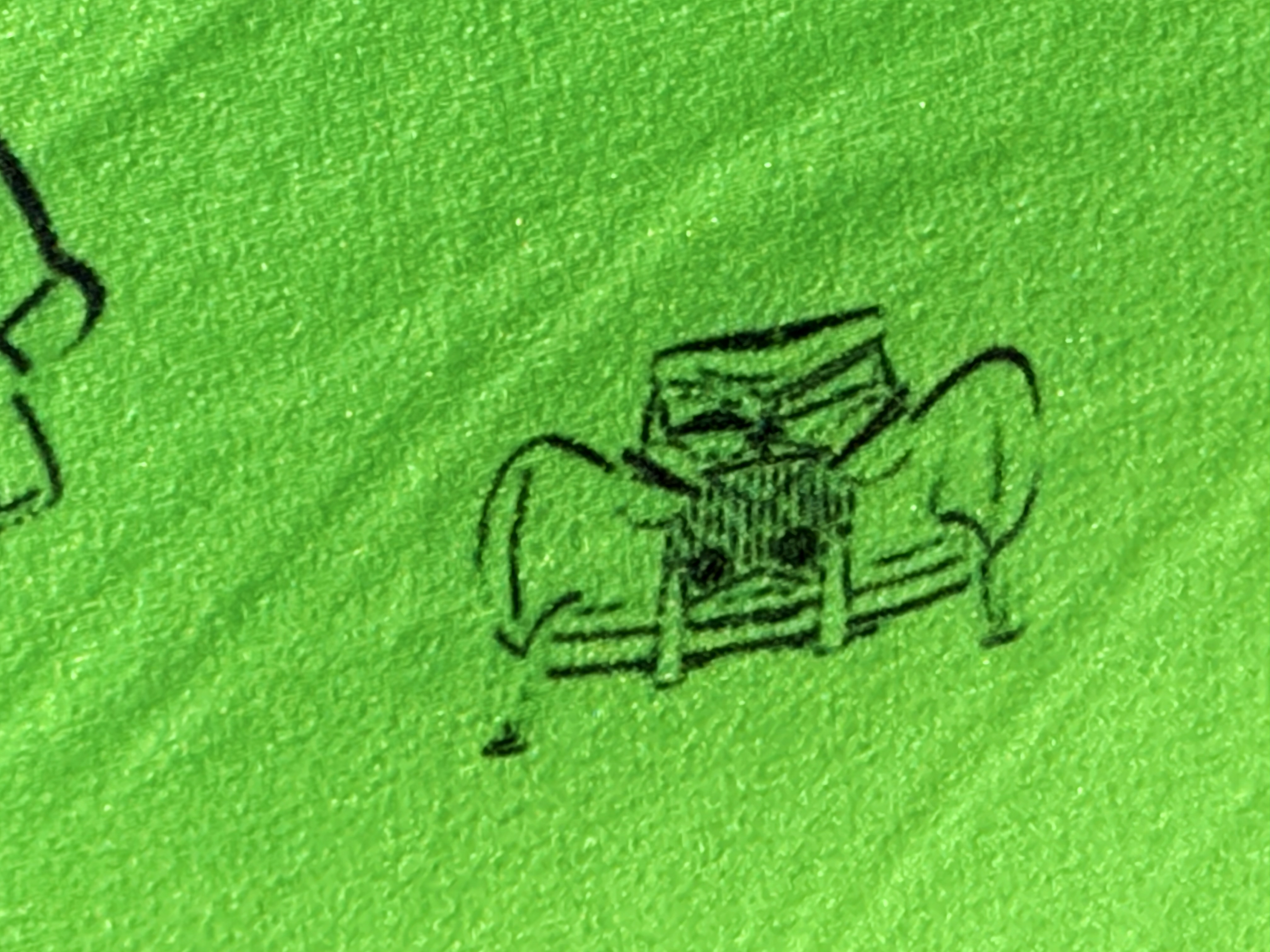 Mr. Toad's motorcar from the extinct Magic Kingdom attraction Mr. Toad's Wild Ride can be found on the shirt.