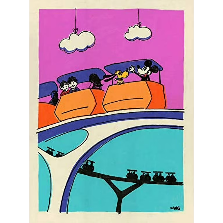 Will Gay is known for his bold, dynamic artwork that blends classic Disney imagery with contemporary flair. His pieces often feature strong lines, rich color, and a sense of movement that captures the spirit of beloved characters in new, engaging ways.