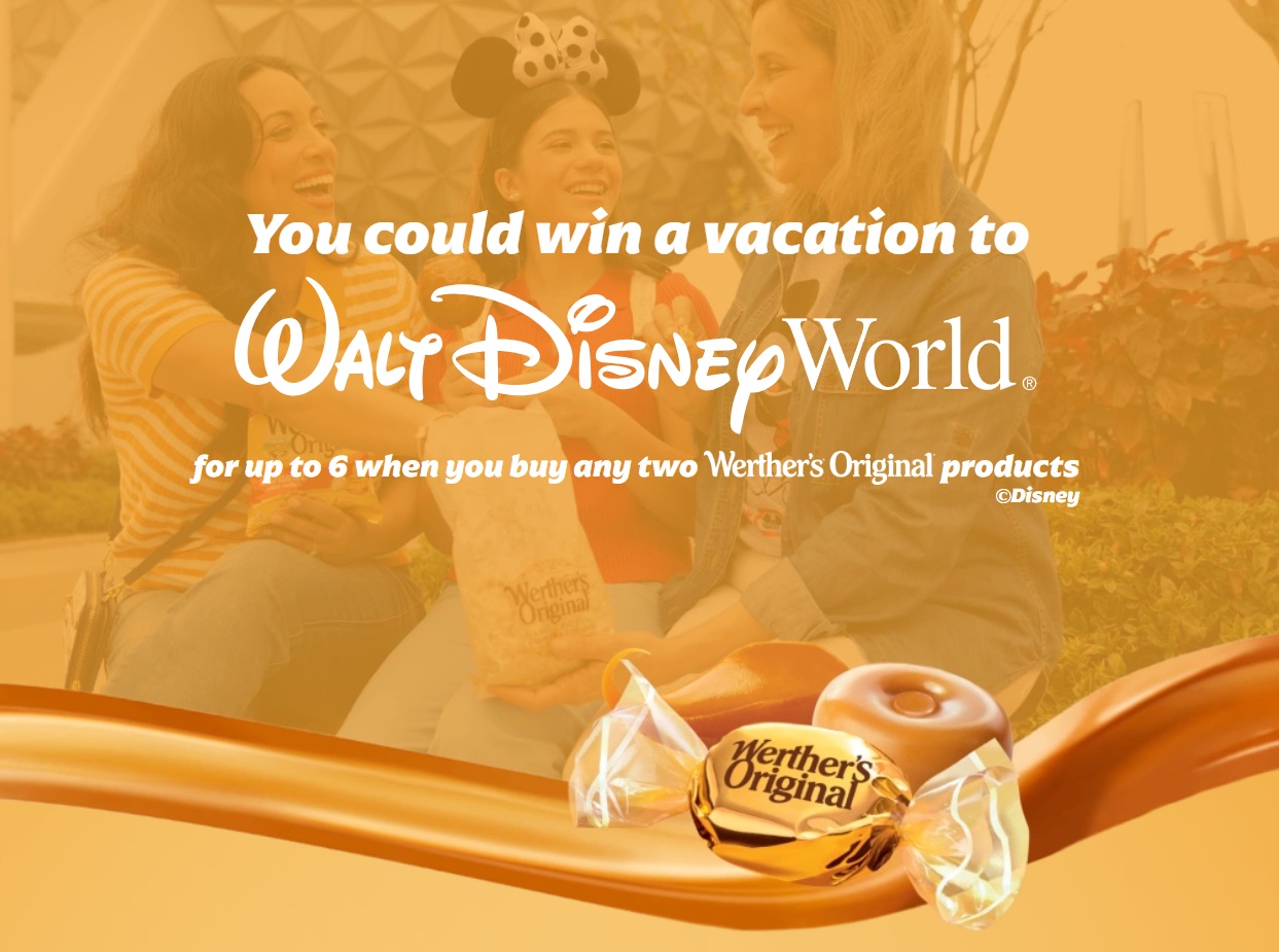 - The Werther’s Original Spring Sweepstakes is easy to enter! When you purchase two Werther’s Original products, head here to enter to win a vacation for 6 to Walt Disney World.