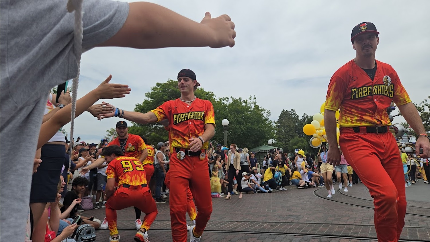 The organization behind it all is called Fans First, a philosophy that’s as central to Bananaland as guest happiness is in Disneyland. And that spirit was in full force during their visit. Before their scheduled appearances even started, players from both the Bananas and the Firefighters were spotted all over the park —signing autographs, taking selfies, meet cast members and chatting with anyone who so much as made eye contact as they were filming for their wildly popular socials. During their cavalcade, they turned Main Street into a full-on block party, handing out high fives, fist bumps, and joy from “it’s a small world" promenade all the way to Town Square.