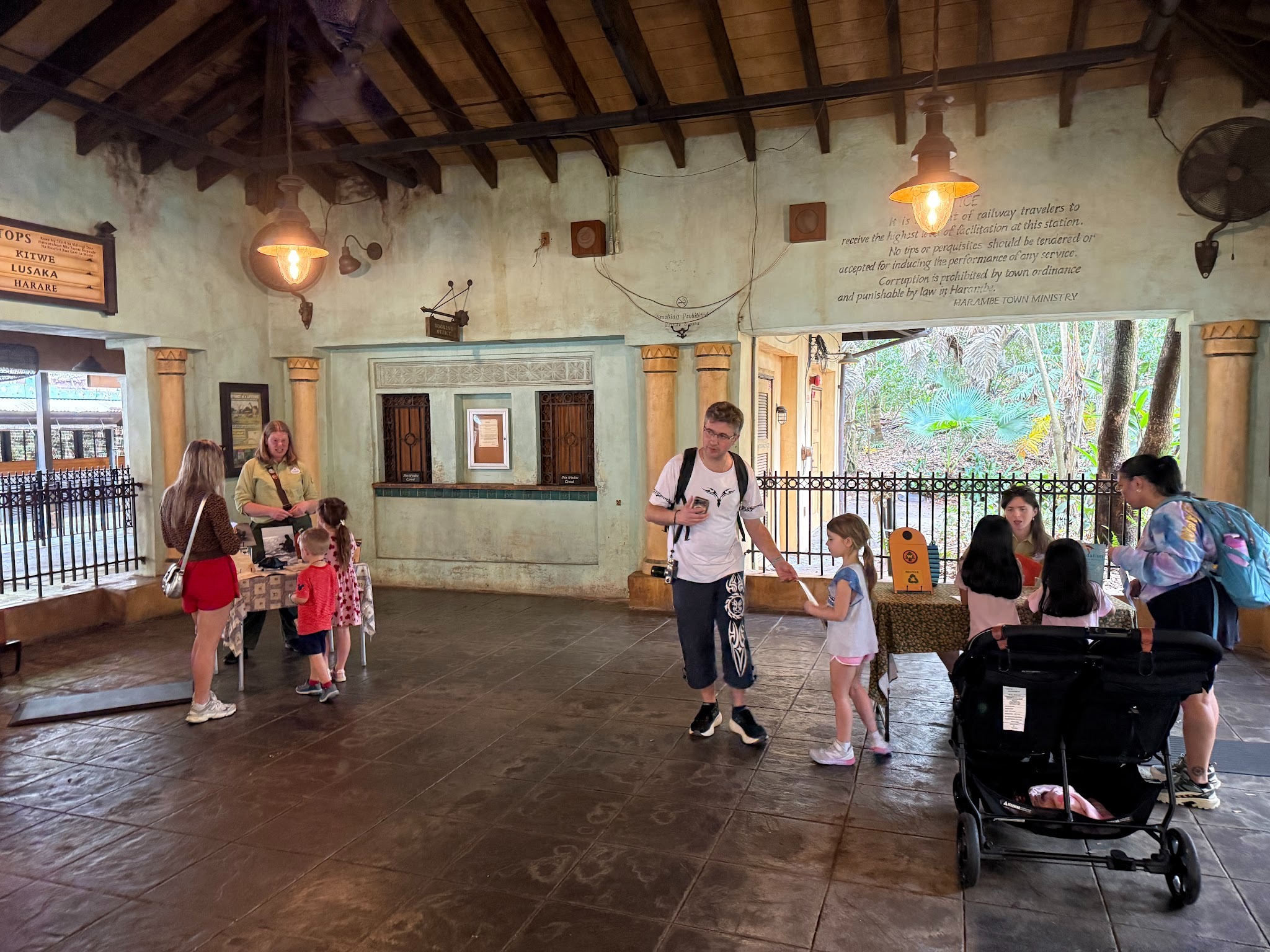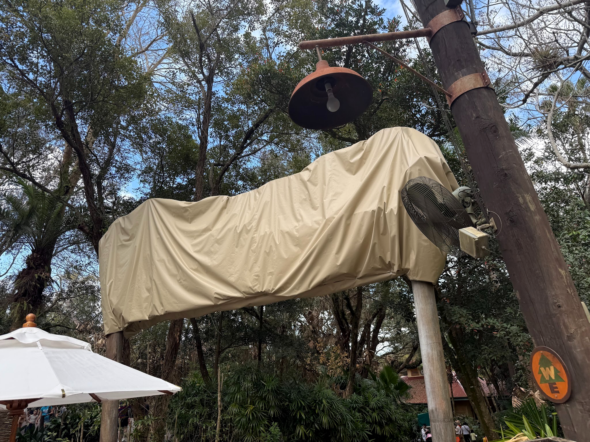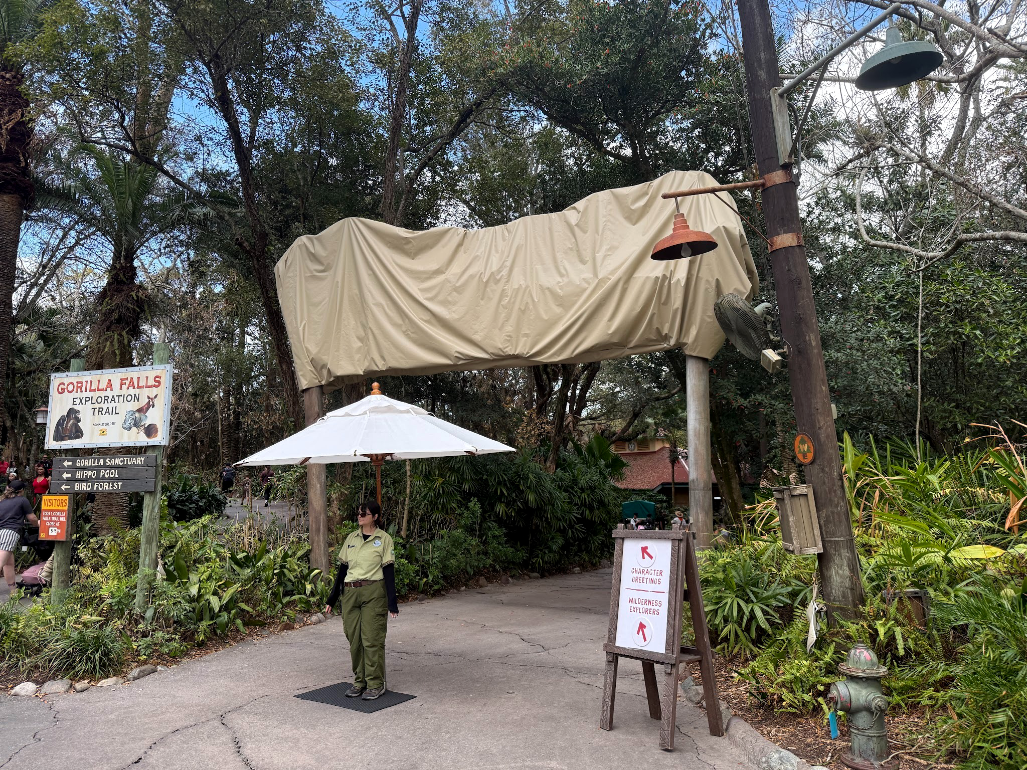 Now, the former marquee for the train and Rafiki's Planet Watch are covered, signifying that the train attraction (and its destination) are currently unavailable. However, the Train Station is currently open so guests partaking in the park's Wilderness Explorers activity can still complete their booklet. Additionally, the train station is also home to some character meet and greets, using the covered and off-the-path location to its fullest extent while the train is out of service.