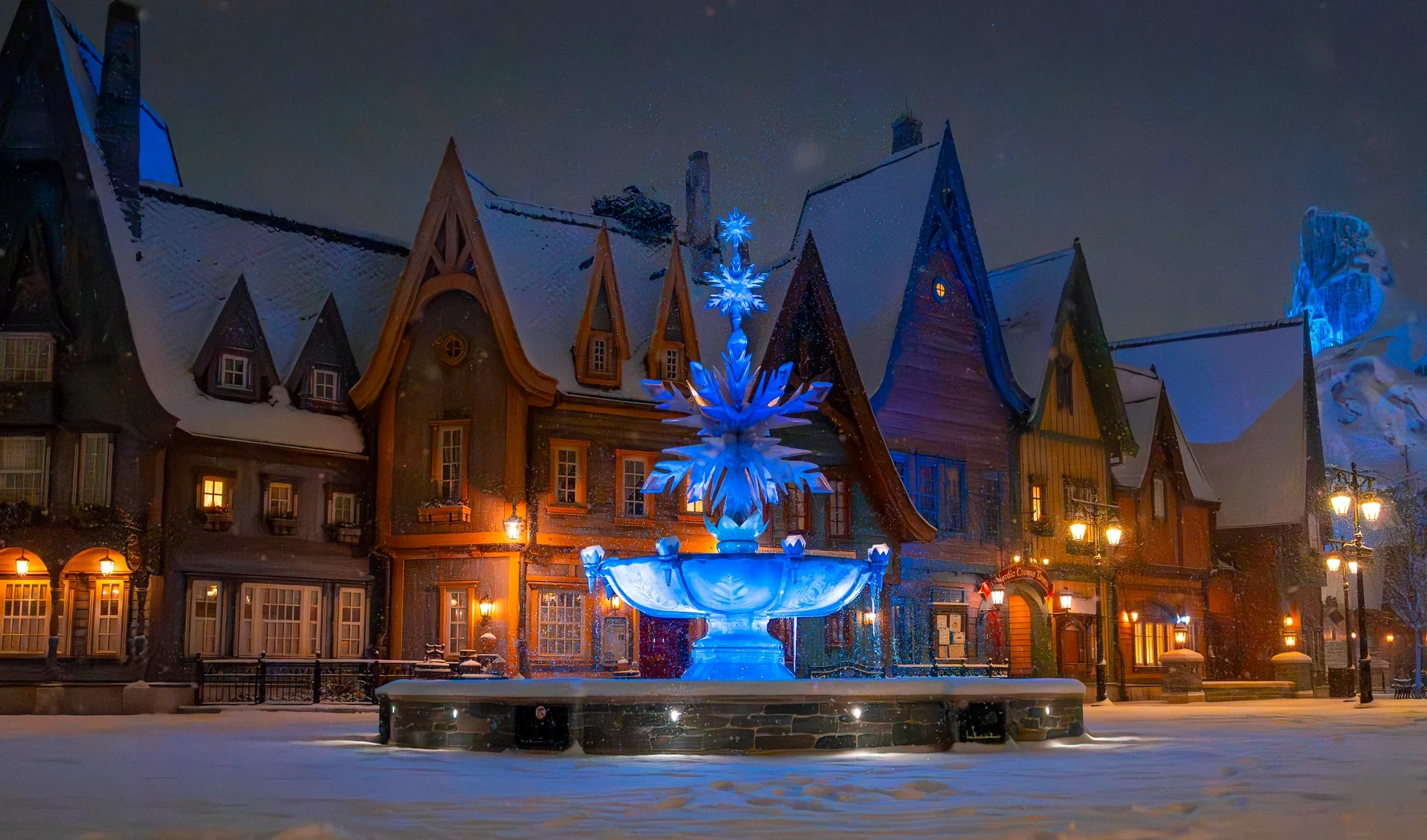 - A number of photos showcase the highlight of the expansion, World of Frozen, which looks even more magical than usual in a blanket of snow. It's particularly fitting that this area is showcased, given Elsa's magical ability to create snow. It truly looks like a scene out of the film!