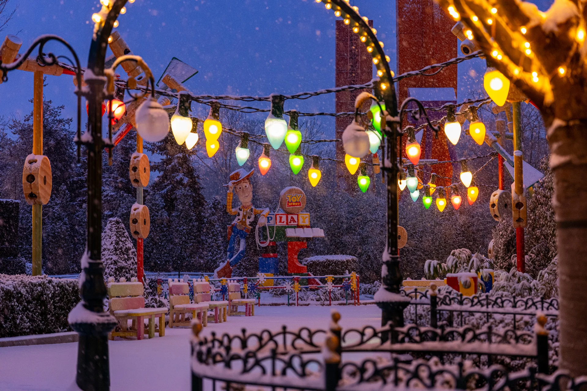 - The new entrance to Toy Story Playland from Adventure Way also looks pretty magical covered in snow.