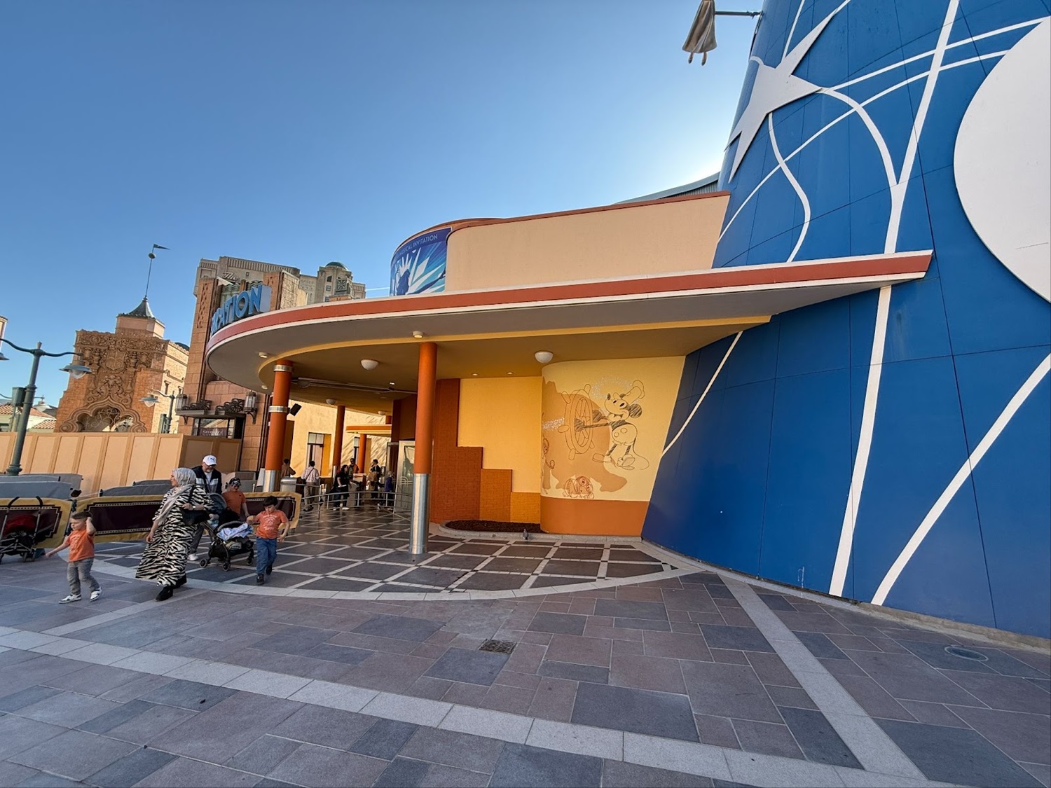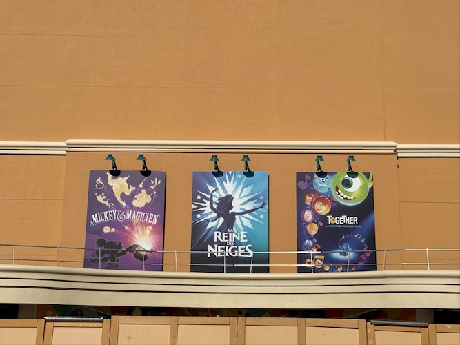 This new entrance area welcomes guests into World Premiere Plaza, inspired by Broadway and the West End’s theatrical spirit. Posters for three of the park’s popular shows hang over the entrance into World Premiere Plaza.