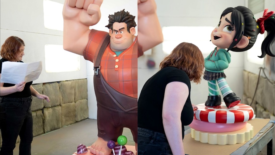 - Imagineer Meg Tracy, one of the creative minds behind the statues, is pictured reviewing the paint treatment to ensure each shade perfectly matches the animated characters from the film.