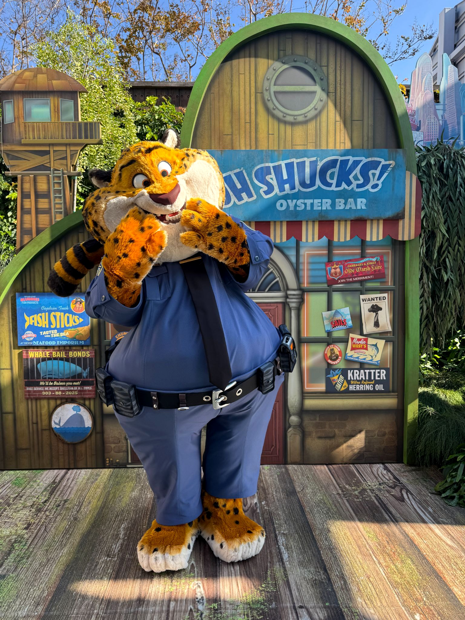 For the first time ever in the parks, Officer Clawhauser is meeting guests in person. Guests can spot him greeting fans with his signature enthusiasm. With his vibrant uniform, bright smile, and love for all things pop culture, he brings the heart (and humor) of the ZPD straight into the park.