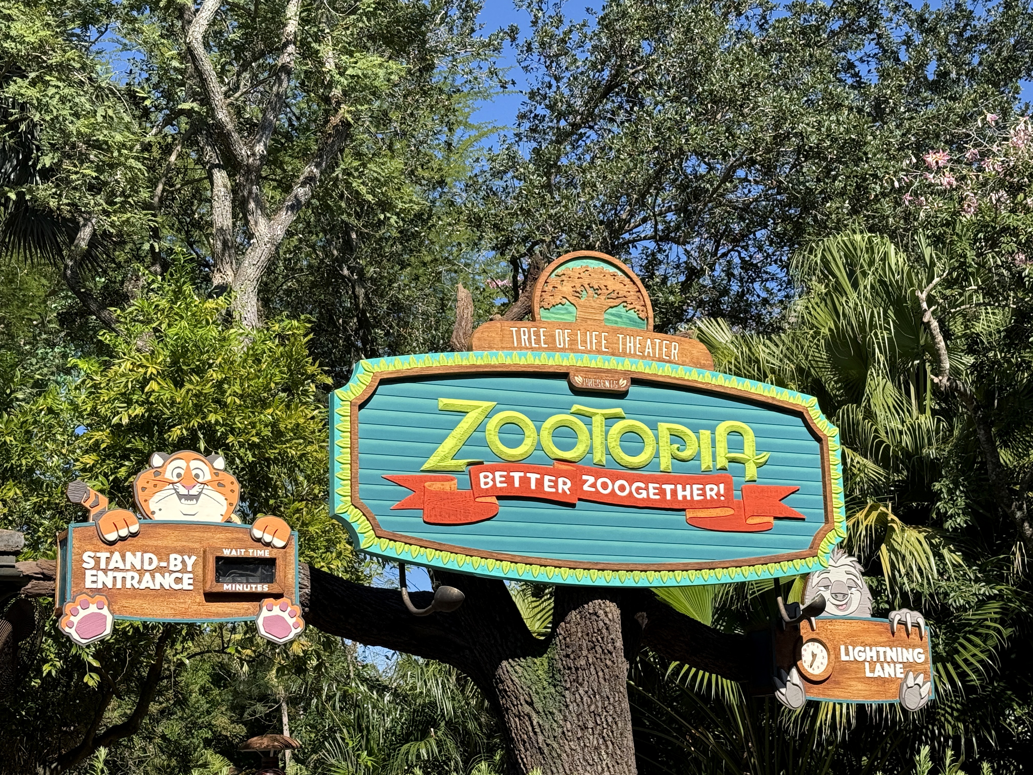 - A detailed marquee for the attraction has also been unveiled, welcoming guests to the Tree of Life Theater. Caricatures of Clawhauser and Flash the Sloth welcome you to the Stand-By entrance and Lightning Lane entrance, respectively. Although, wouldn't it be more appropriate if it were the other way around?