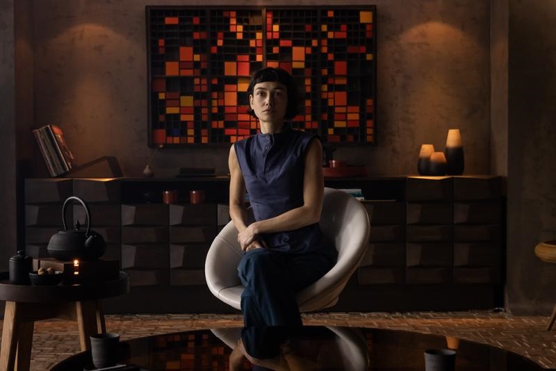 Down on Earth, we are introduced to Prodgy’s “Neverland" Research Island. A bald young girl, Marcy (Florence Bensberg), looks curiously at a scorpion in a biome as a synth, Kirsh (Timothy Olyphant), teaches her about the nature of predators and prey. Their conversation is interrupted by Dame Sylvia (Essie Davis), who announces that it’s time. Marcy is anxious, but Kirsh promises to be there when she wakes up. Taking Dame Sylvia’s hand, Marcy asks Kirsh not to kill the scorpion.
