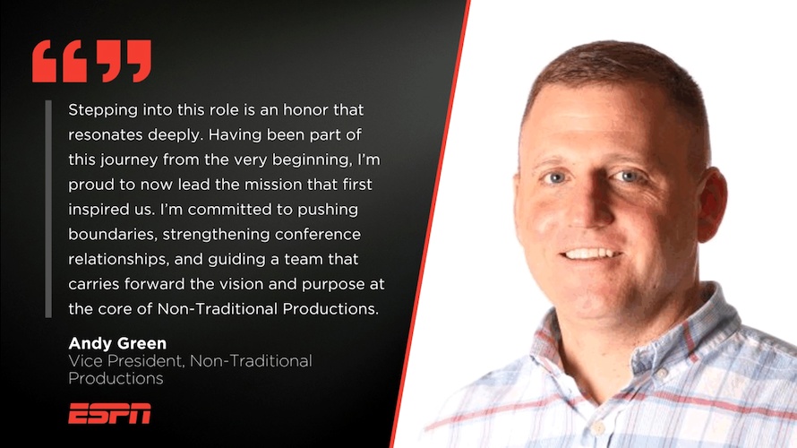 Andy Green Promoted as VP of Pioneers Non-Traditional Productions at ESPN