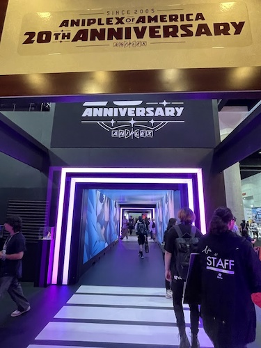 Aniplex of America celebrated its 20th anniversary by hosting several panels and an enormous booth with a mini-stage and a tunnel exhibiting some of their many shows throughout the years.